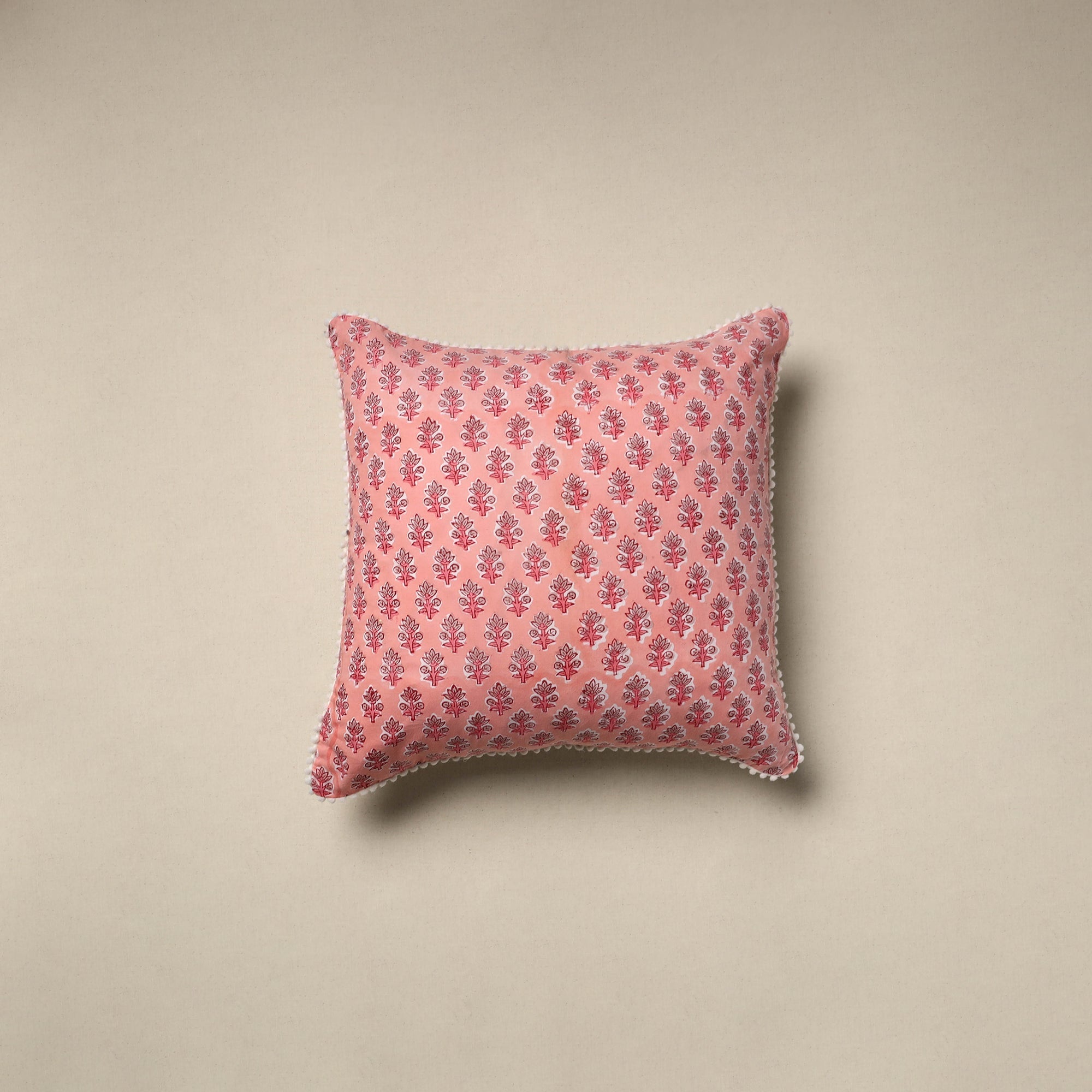 Style up your space with this beautiful pink sanganeri cushion cover. Hand block printed by artisans in Rajasthan, it features delicate floral motifs and pom-pom edges. Made from soft cotton, it’s perfect for your sofa, bed or that cozy corner you love to unwind in.