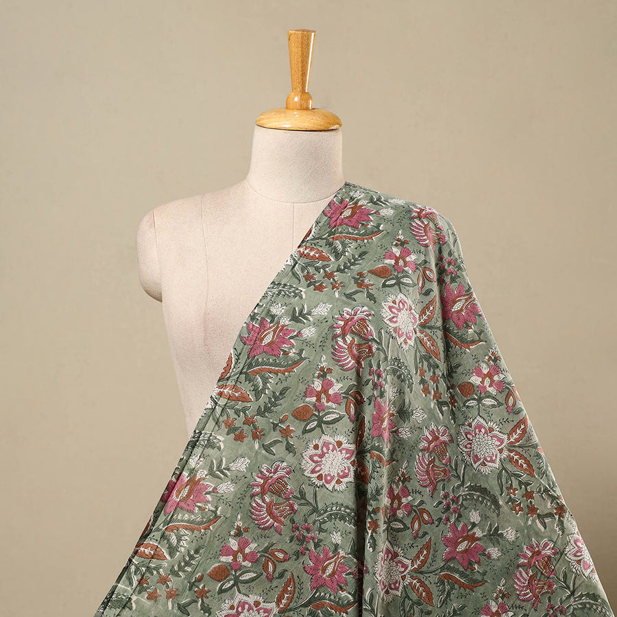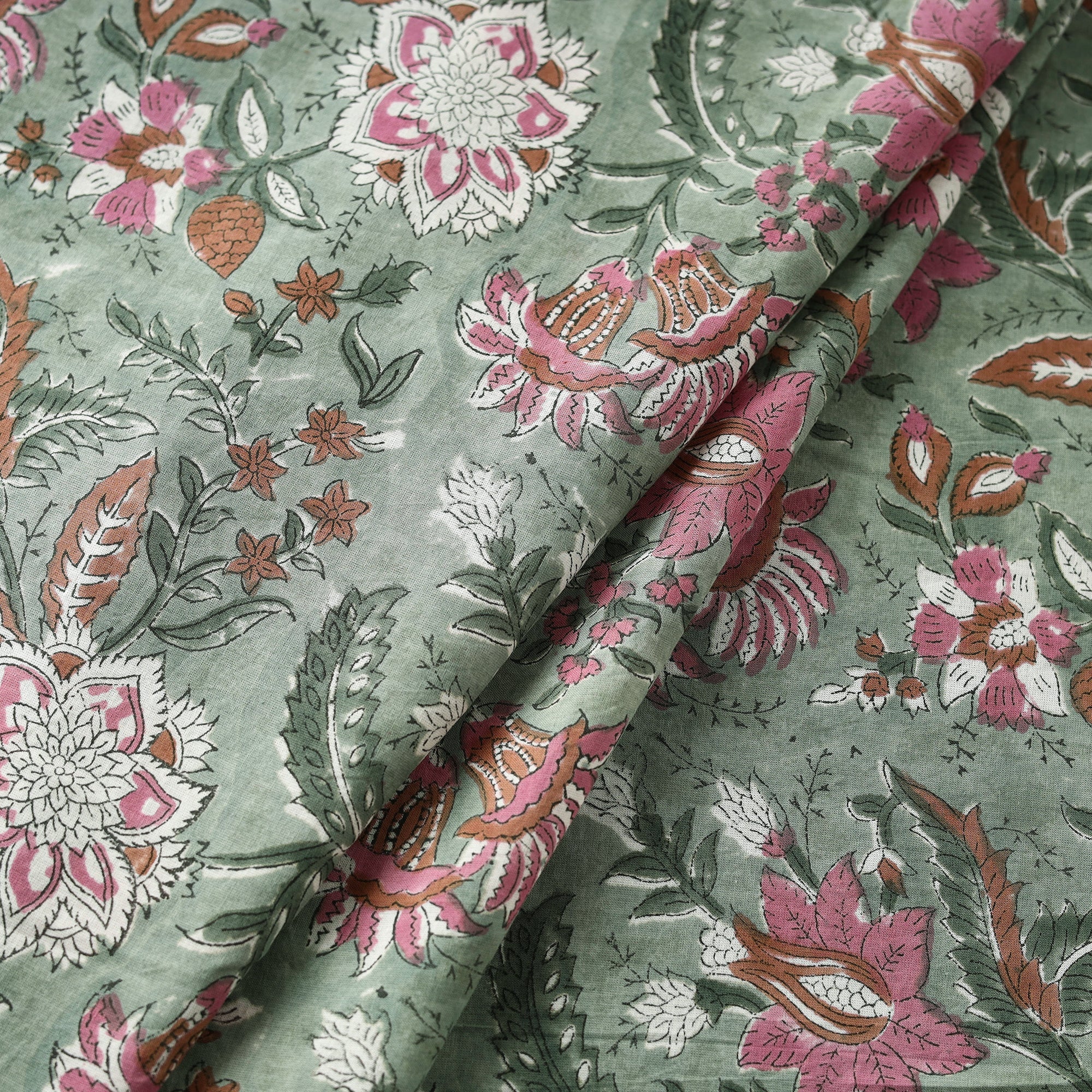 • Green - Block Print Cotton Sanganeri Fabric 07
