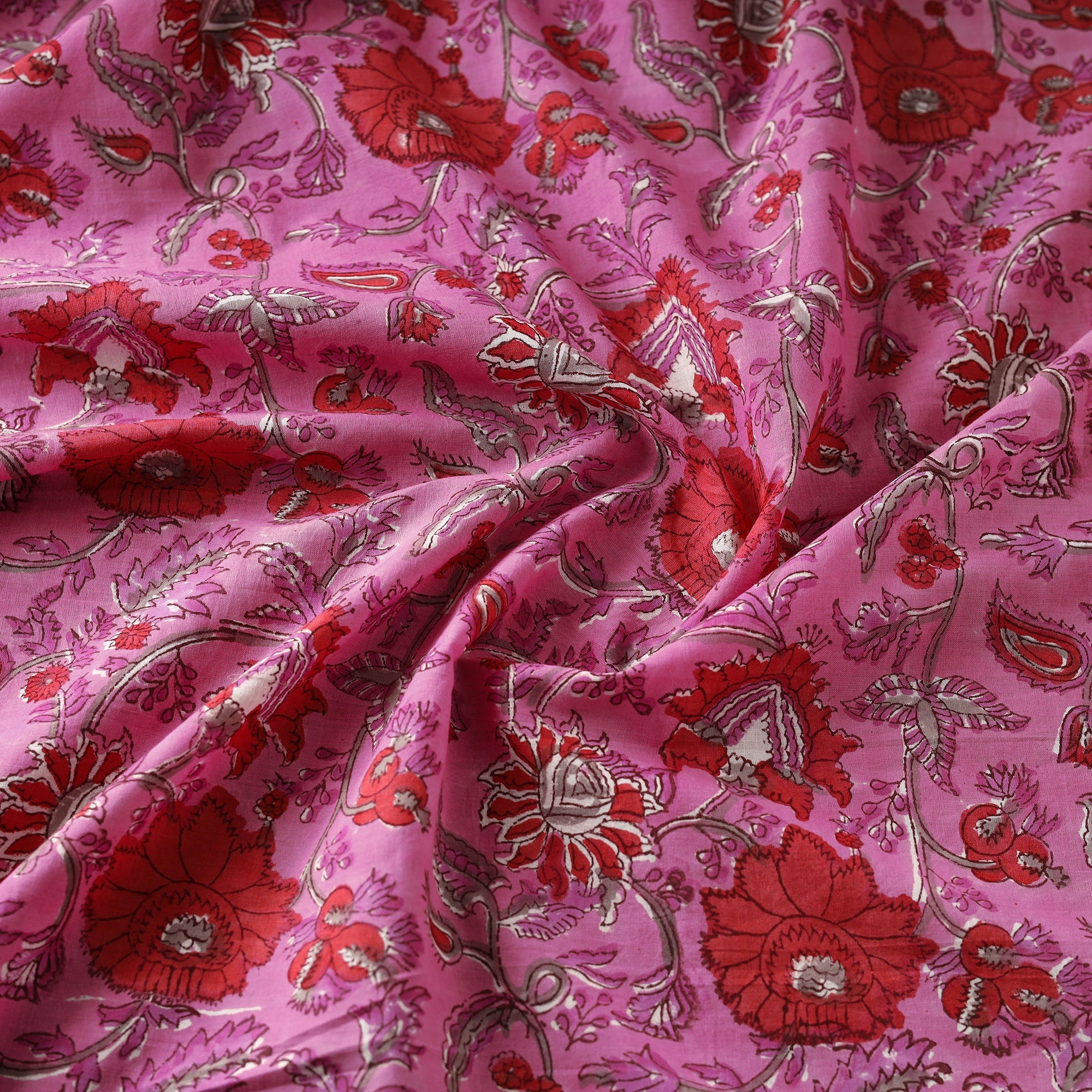 Pink - Cotton Hand Block Sanganeri Print Fabric 10