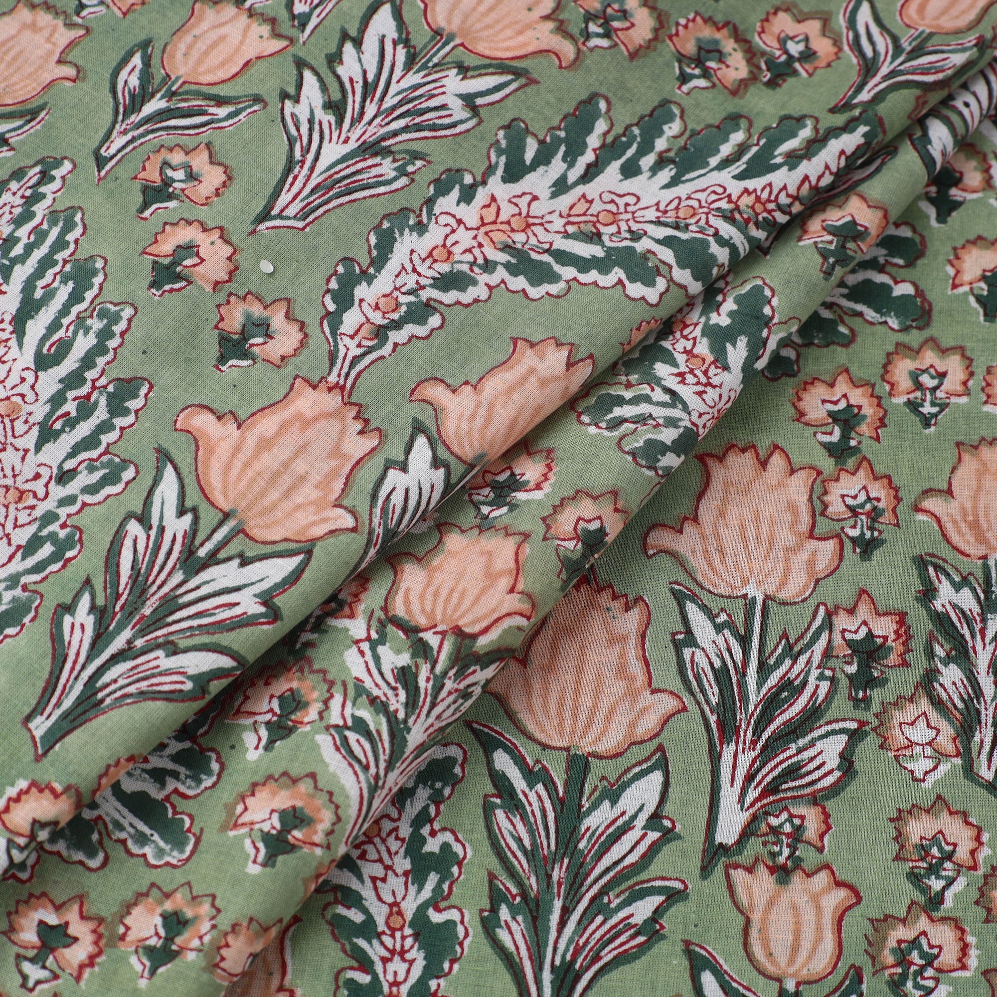 This block print cotton green sanganeri fabric showcases exquisite block print designs, crafted using traditional techniques from Rajasthan. The vibrant colors and intricate patterns reflect India’s rich textile heritage. Made with soft, breathable cotton, this fabric is ideal for custom clothing such as kurtas and dresses, or stylish home decor projects. It is dyed using azo-free dyes, ensuring both safety and vibrant, long-lasting colors.