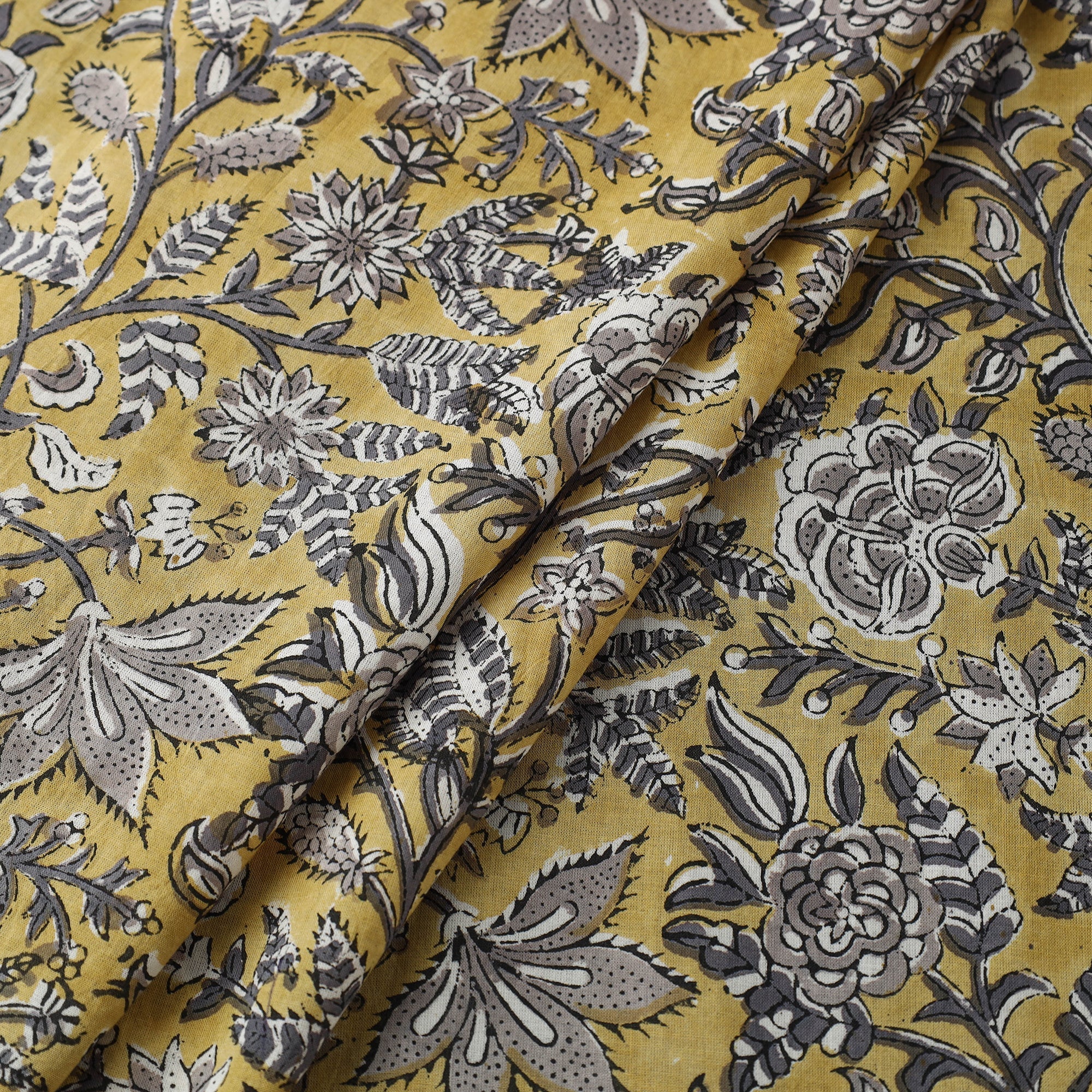 Yellow - Block Print Cotton Sanganeri Fabric 16