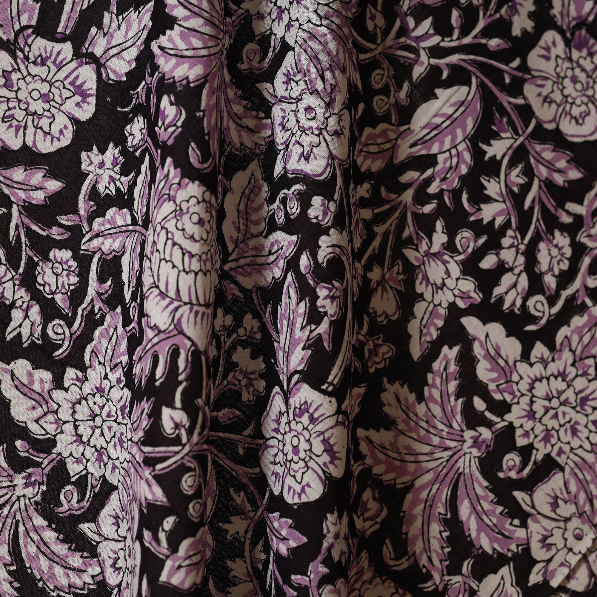 Experience the charm of black sanganeri print cotton fabric. Printed using hand block techniques by artisans in Sanganer, Jaipur, it showcases delicate floral patterns created with traditional wooden blocks. The breathable, lightweight cotton is ideal for making kurtas, dresses, tunics, or even home décor items like cushions and curtains. This fabric blends everyday comfort with a timeless, elegant style.