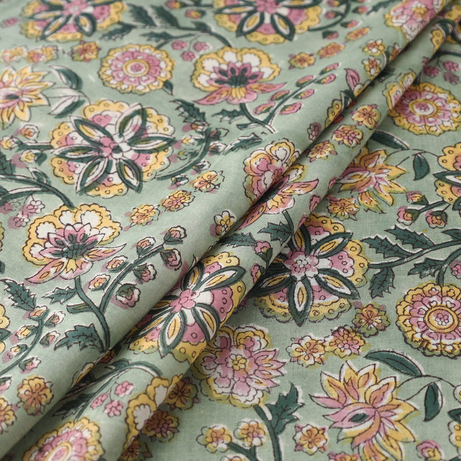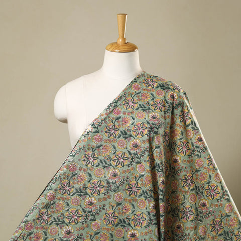 Experience the elegance of green sanganeri print fabric, a traditional textile from Rajasthan renowned for its intricate block prints and vibrant patterns. Made from cotton and dyed with bleed free VAT dyes, this fabric ensures long-lasting beauty and durability. Add a touch of heritage to your wardrobe or home with this exquisite piece of artistry.