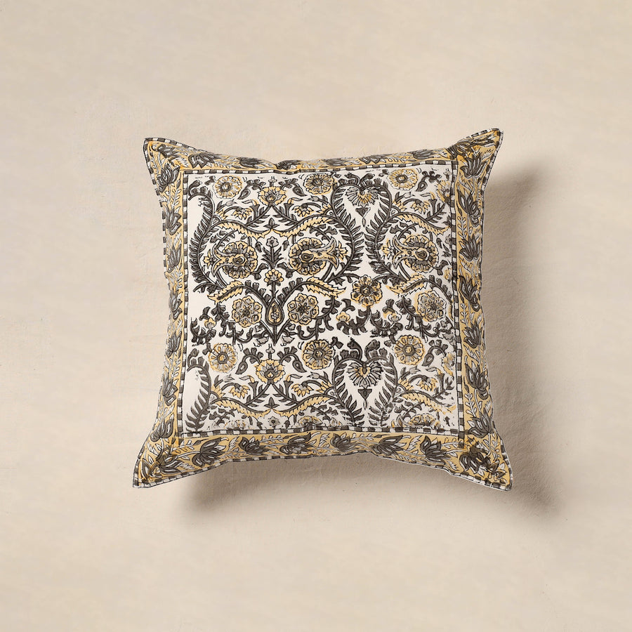 Bring home a piece of Rajasthan with this white sanganeri floral cushion cover, hand block printed by artisans in Jaipur. Made from cotton, the cover features traditional floral patterns created using bleed-free VAT dyes. sanganeri printing is a centuries-old craft, celebrated for its delicate motifs and pastel hues. A perfect accent for your sofa, bed, or reading nook.