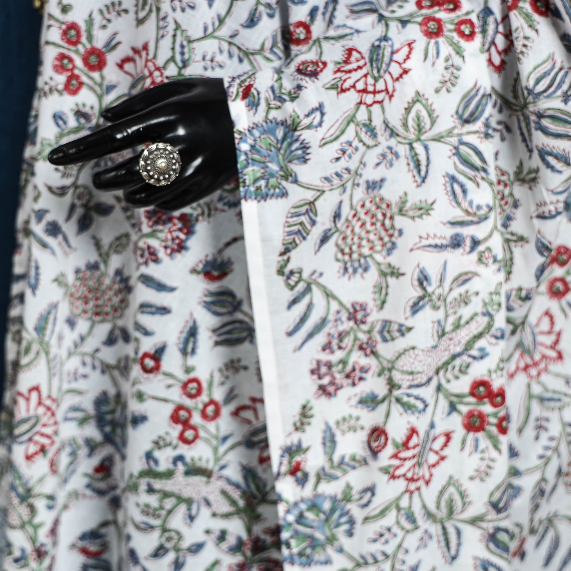 Elevate your style with our exquisite white sanganeri hand-block printed dupatta, crafted by skilled artisans of Rajasthan. Featuring vibrant motifs, this dupatta is made from soft, breathable cotton. Sanganeri printing originates from the town of Sanganer and is known for its intricate floral patterns, perfect for both ethnic and fusion looks.