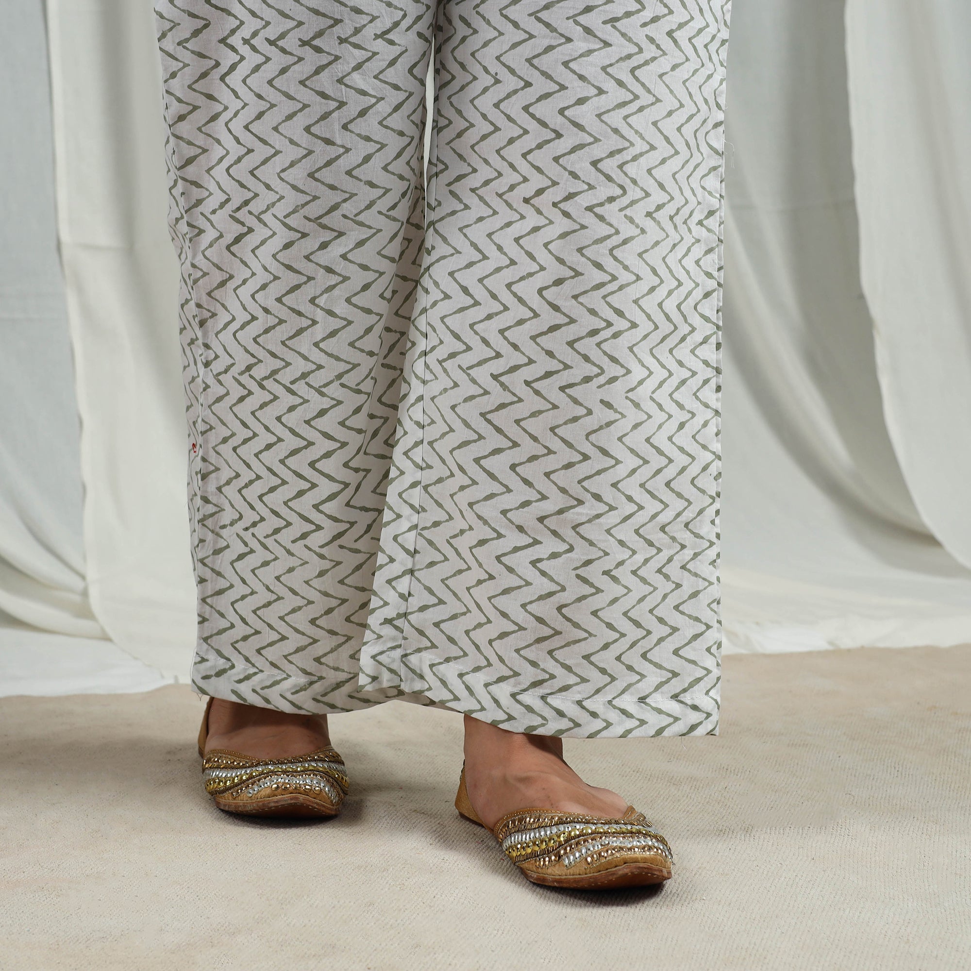This grey sanganeri block print cotton kurta set includes a comfortable kurta with a side pocket, matching palazzo pants with two pockets, and a lightweight kota doria dupatta. Designed for ease and everyday style, it’s a great pick for casual outings or festive wear. The sanganeri print and kota doria weave come from Rajasthan, celebrated for its rich textile traditions.