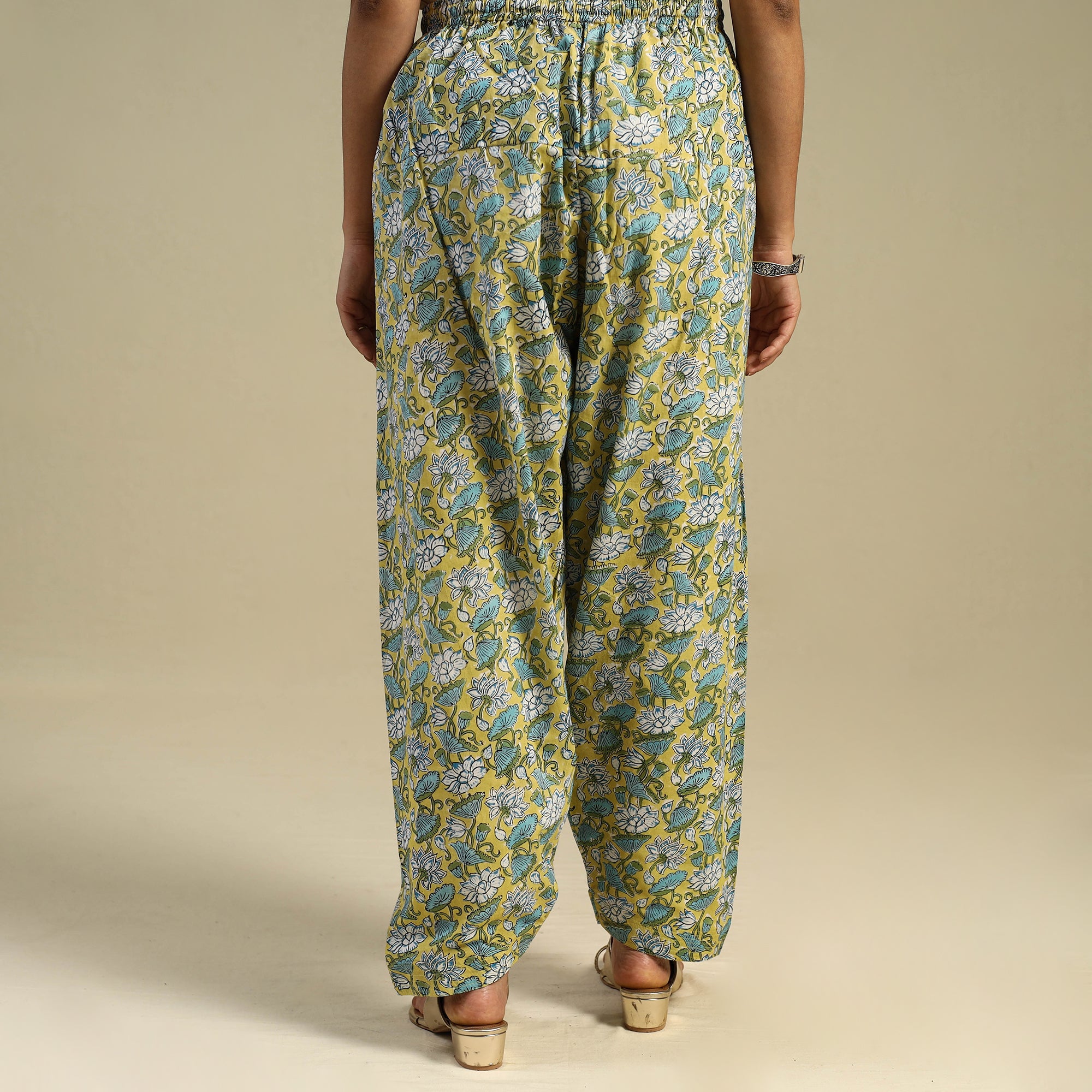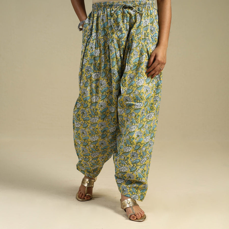This green cotton sanganeri salwar is crafted using traditional hand block printing techniques from Rajasthan. It features soft, breathable cotton fabric, an elasticated waistband with a drawstring, and a handy side pocket. Comfortable and rich in cultural charm, this salwar is ideal for everyday outings or laid-back festive wear.