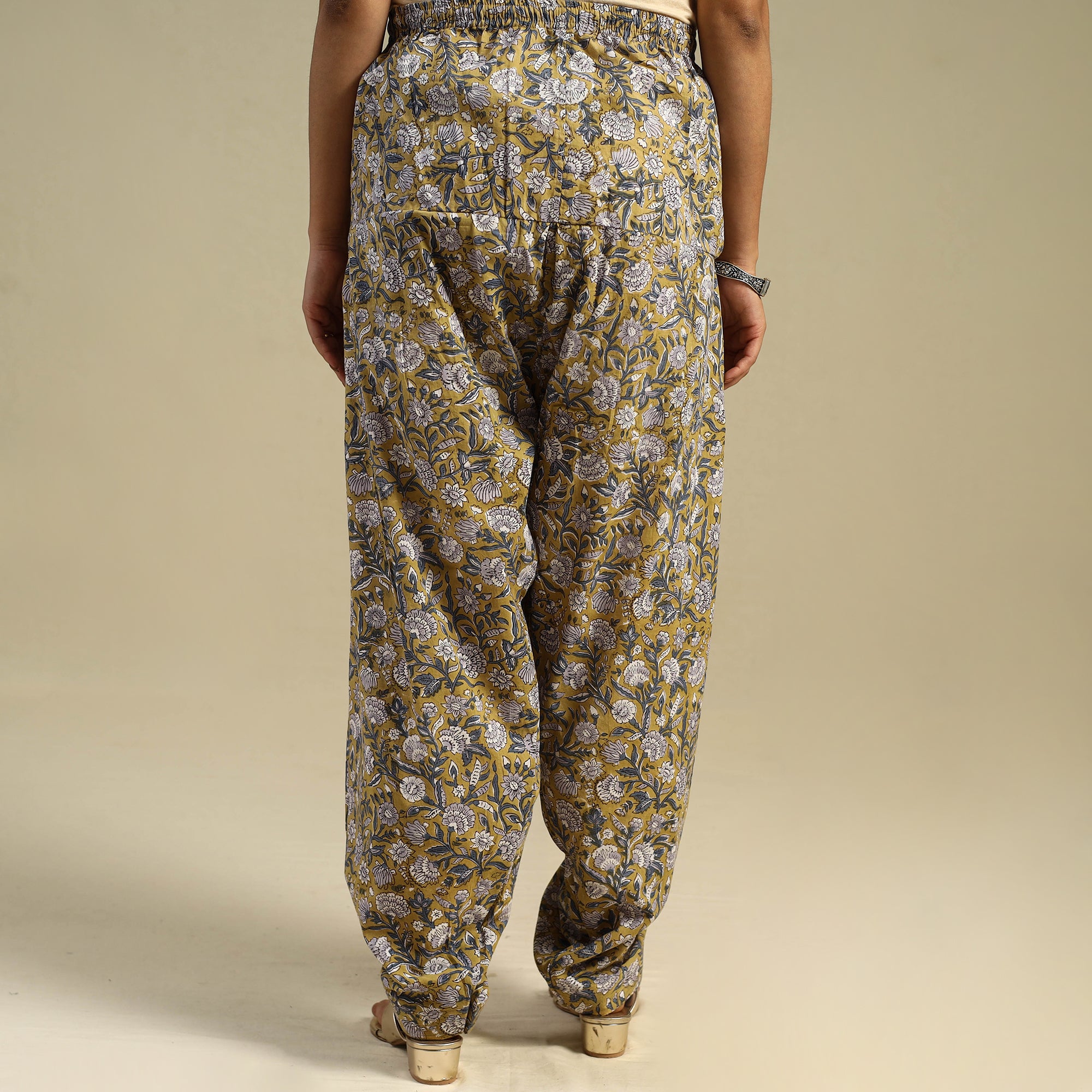 This yellow cotton sanganeri salwar is crafted using traditional hand block printing techniques from Rajasthan. It features soft, breathable cotton fabric, an elasticated waistband with a drawstring, and a handy side pocket. Comfortable and rich in cultural charm, this salwar is ideal for everyday outings or laid-back festive wear.