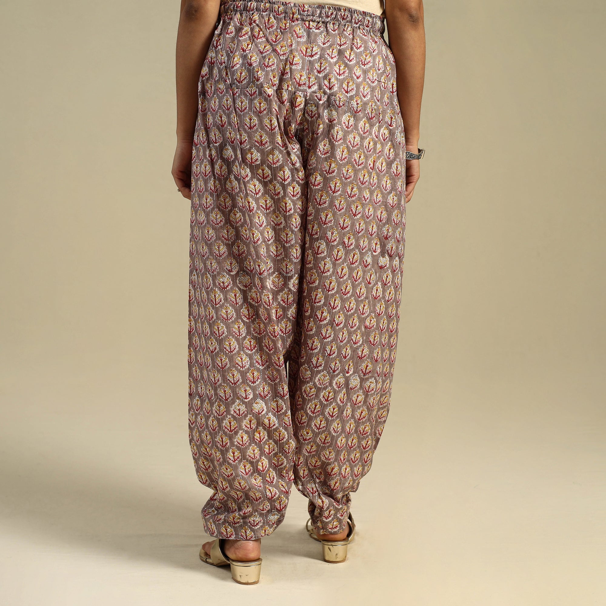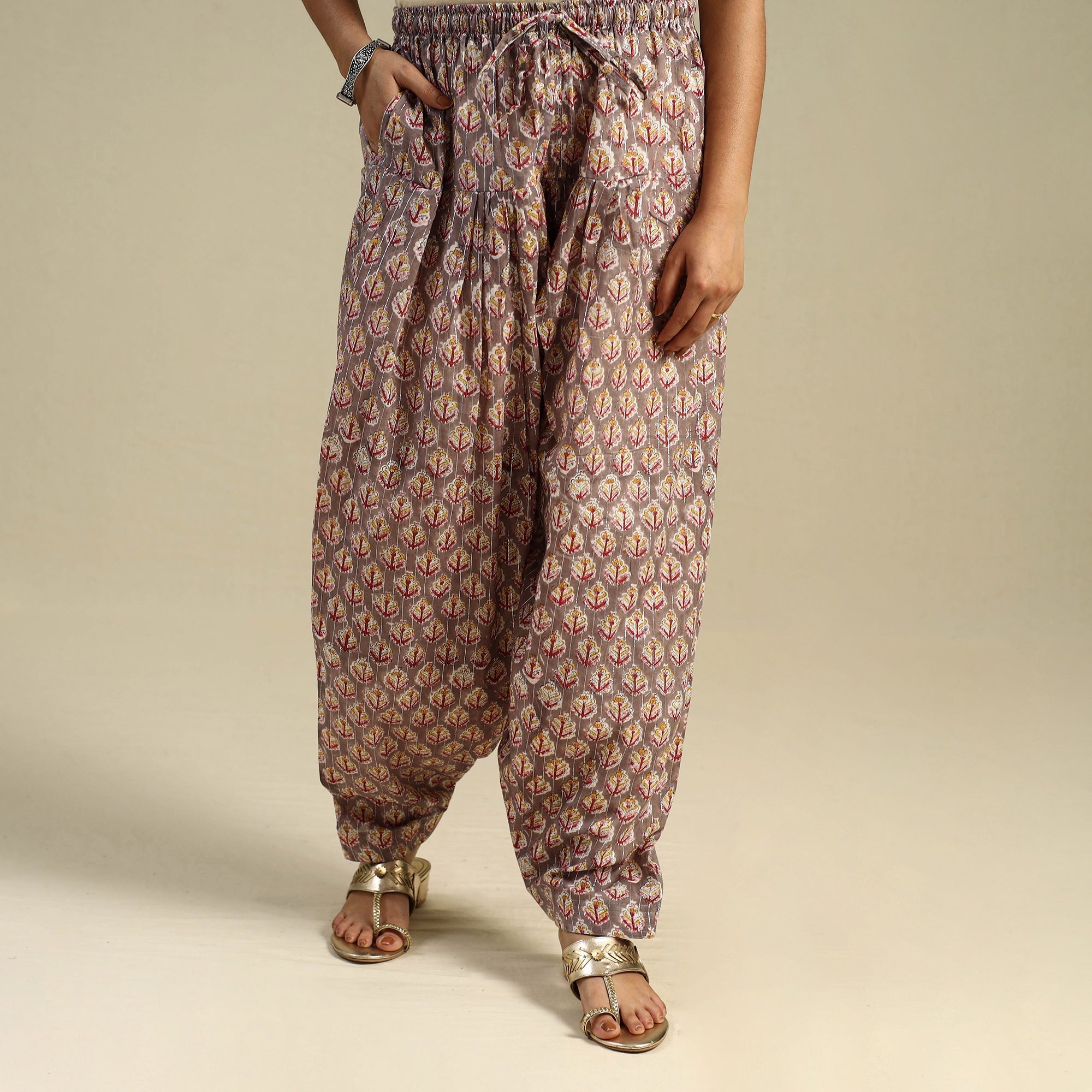 This brown cotton sanganeri salwar is crafted using traditional hand block printing techniques from Rajasthan. It features soft, breathable cotton fabric, an elasticated waistband with a drawstring, and a handy side pocket. Comfortable and rich in cultural charm, this salwar is ideal for everyday outings or laid-back festive wear.