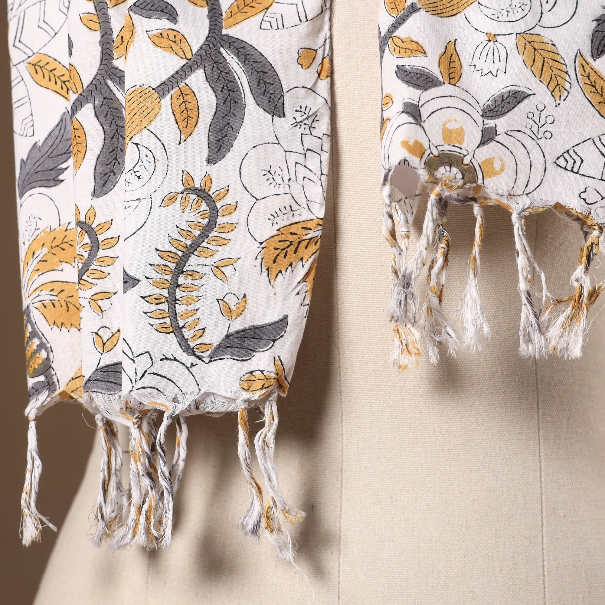 This white sanganeri stole celebrates the age-old charm of Rajasthan’s block printing. Made from soft cotton and dyed using durable VAT colors, it features delicate floral prints and tassels that add a graceful flair. Blending tradition with comfort, it is ideal for daily wear or special moments. Hand-printed by skilled artisans of Sanganer, this piece brings local heritage yahan into your style.