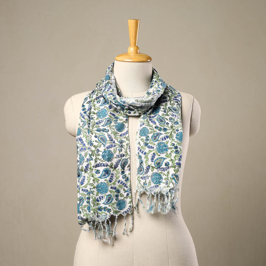 Embrace the elegance of a traditional block print cotton blue sanganeri stole with tassels. Featuring delicate floral patterns known as 'Buttas,' this piece reflects the rich cultural heritage of Sanganer, Rajasthan. Crafted using VAT dyes, it ensures vibrant and lasting colors. The soft, breathable cotton makes it perfect for daily wear or special occasions.