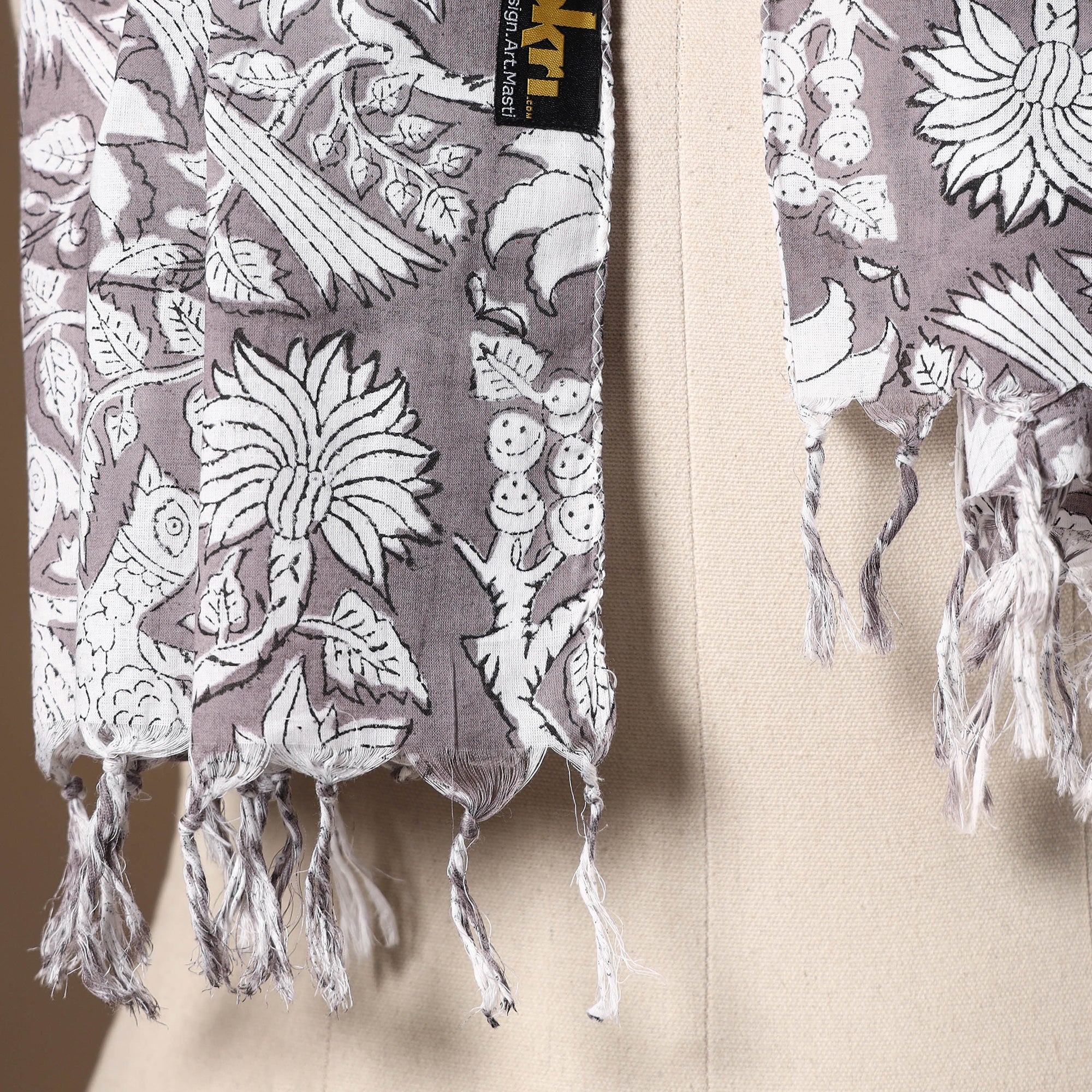 This grey sanganeri stole celebrates the age-old charm of Rajasthan’s block printing. Made from soft cotton and dyed using durable VAT colors, it features delicate floral prints and tassels that add a graceful flair. Blending tradition with comfort, it is ideal for daily wear or special moments. Hand-printed by skilled artisans of Sanganer, this piece brings local heritage yahan into your style.