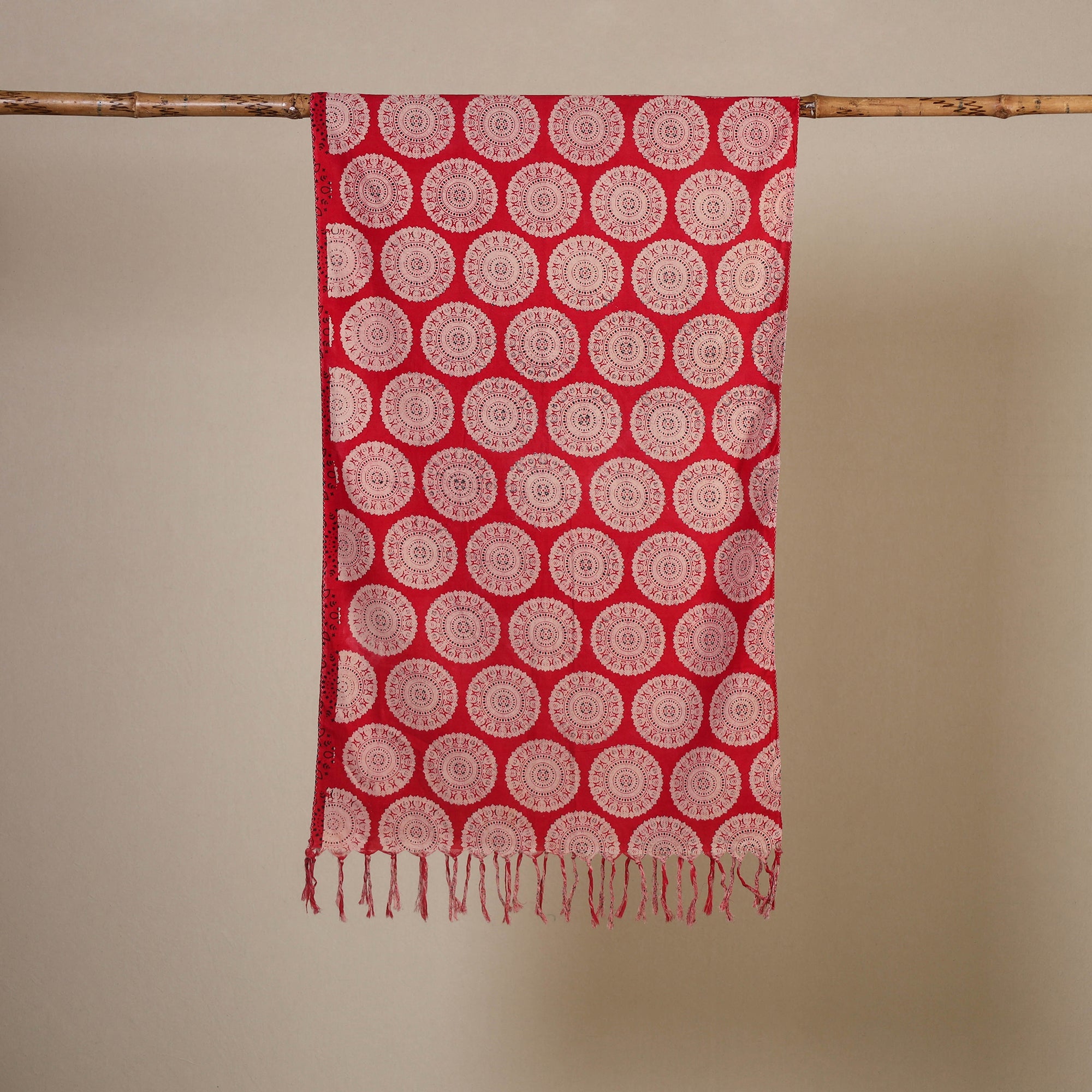 Crafted by artisans in Sanganer, Rajasthan, this red cotton stole features traditional hand block printing techniques. Adorned with floral motifs and delicate tassels, it brings elegance to both everyday and festive wear. Made from breathable cotton, it combines comfort with the timeless beauty of Indian textile traditions.
