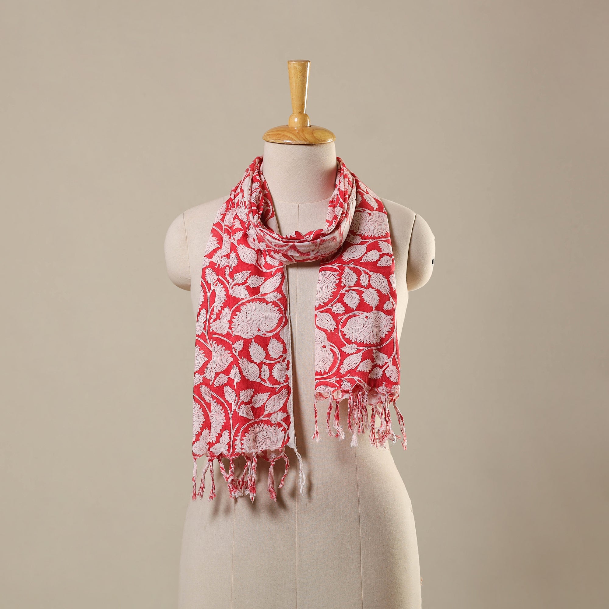 Crafted by artisans in Sanganer, Rajasthan, this red cotton stole features traditional hand block printing techniques. Adorned with floral motifs and delicate tassels, it brings elegance to both everyday and festive wear. Made from breathable cotton, it combines comfort with the timeless beauty of Indian textile traditions.