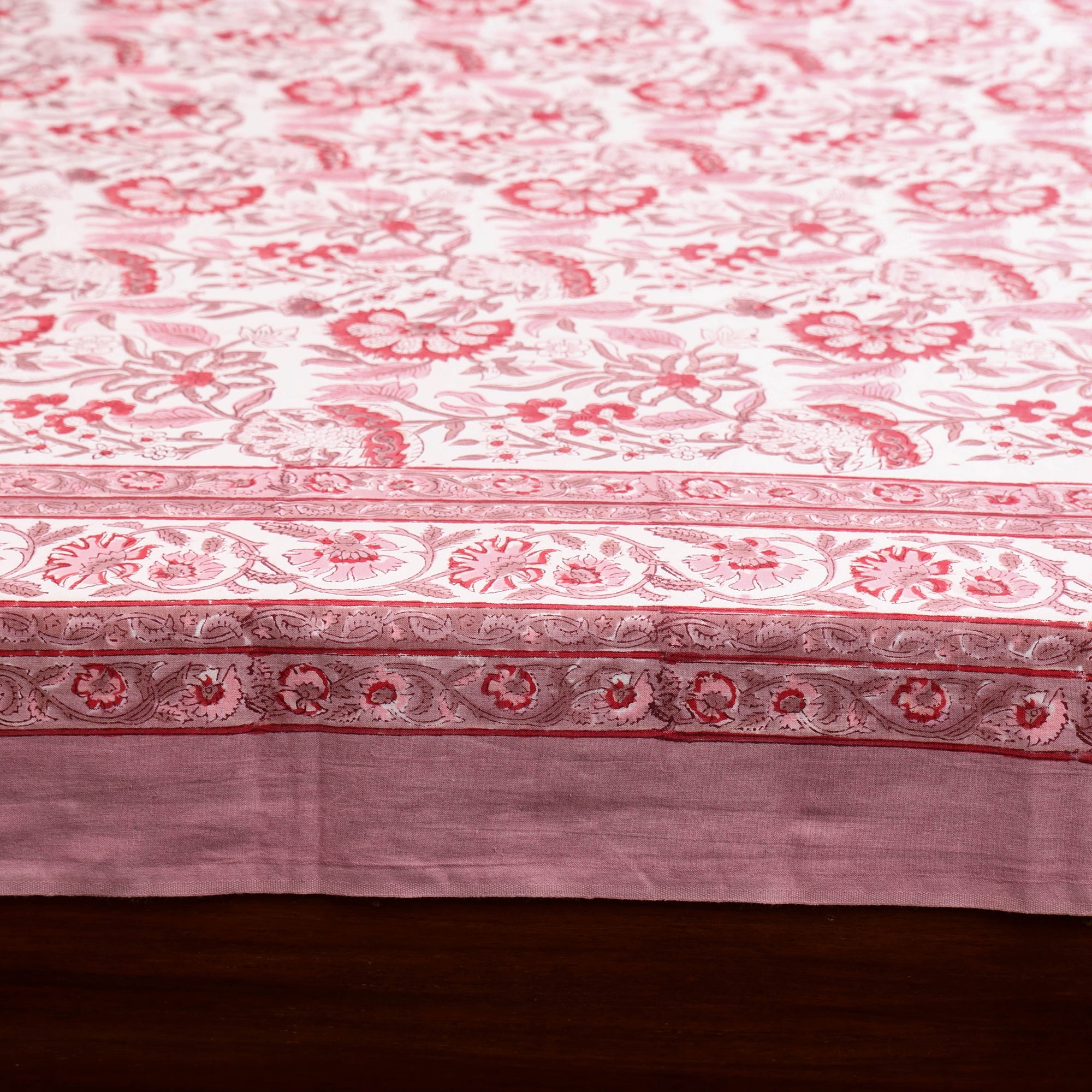 Sanganeri print cotton bed sheet, crafted by artisans of Rajasthan. Made using hand block printing techniques with bleed-free VAT dyes it ensures long-lasting vibrancy. Adorned with floral motifs this single bed sheet is suitable for everyday use.