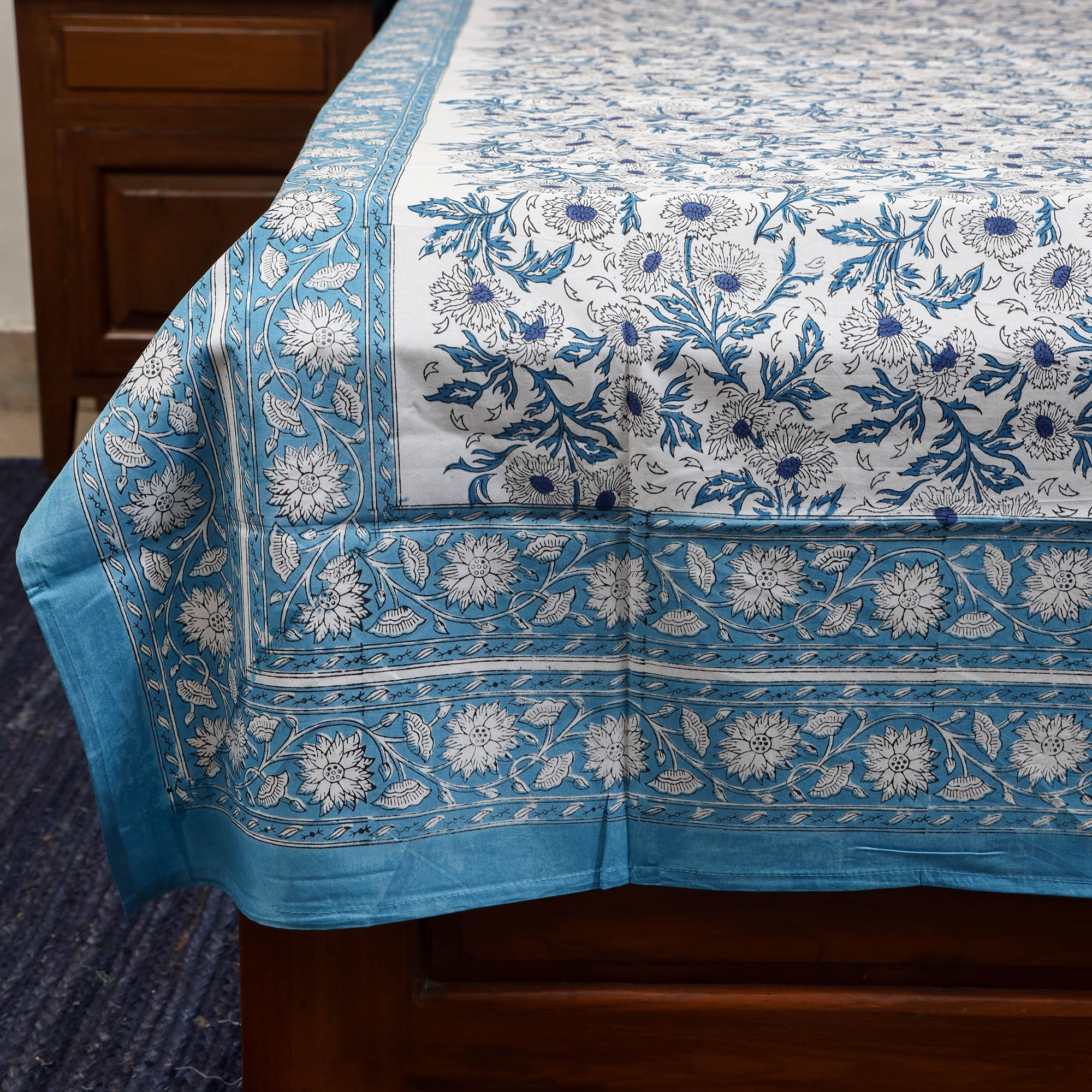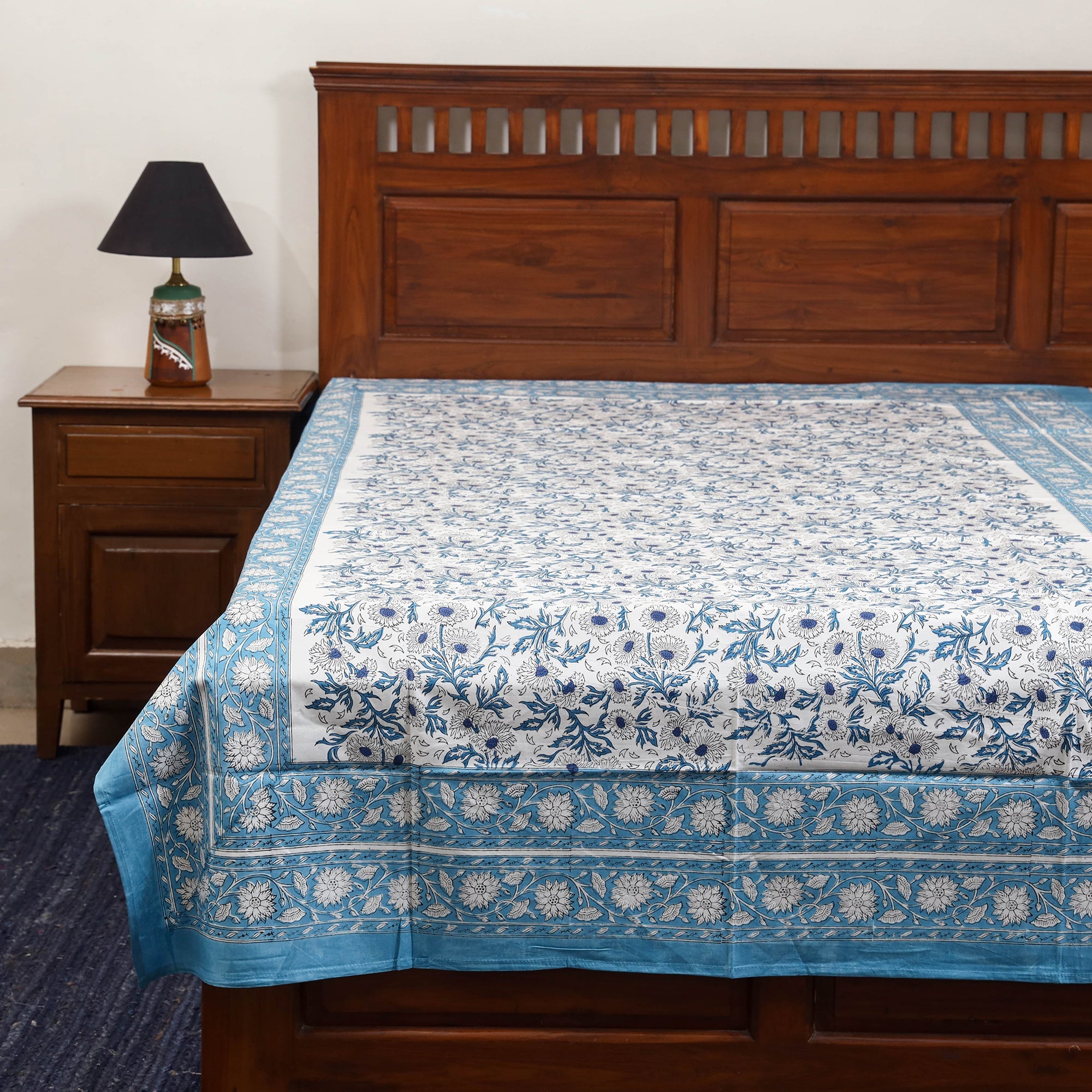 Sanganeri print cotton bed sheet, crafted by artisans of Rajasthan. Made using hand block printing techniques with bleed-free VAT dyes it ensures long-lasting vibrancy. Adorned with floral motifs this single bed sheet is suitable for everyday use.