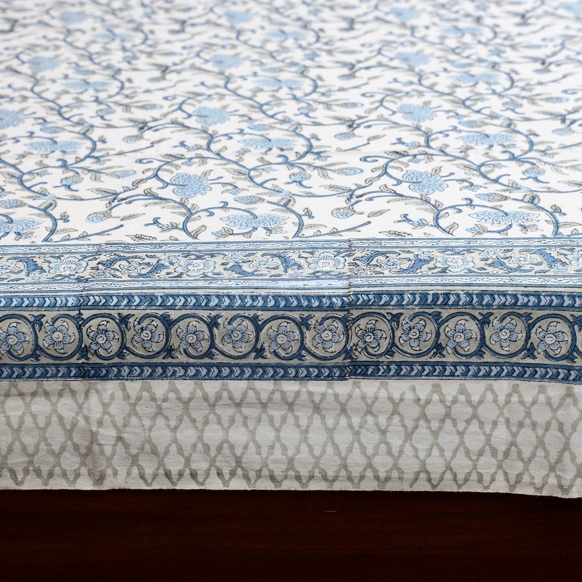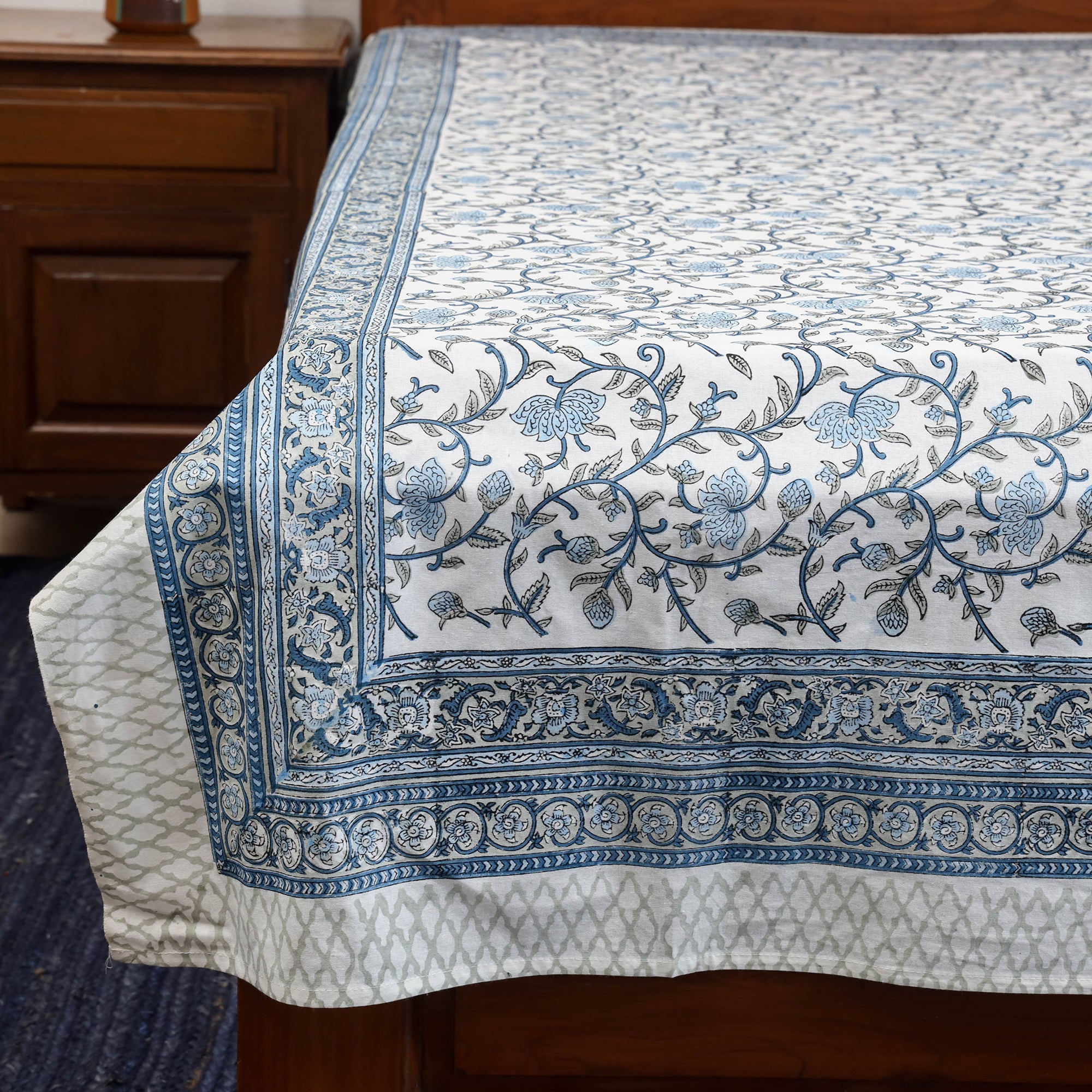 Sanganeri print cotton bed sheet, crafted by artisans of Rajasthan. Made using hand block printing techniques with bleed-free VAT dyes it ensures long-lasting vibrancy. Adorned with floral motifs this single bed sheet is suitable for everyday use.