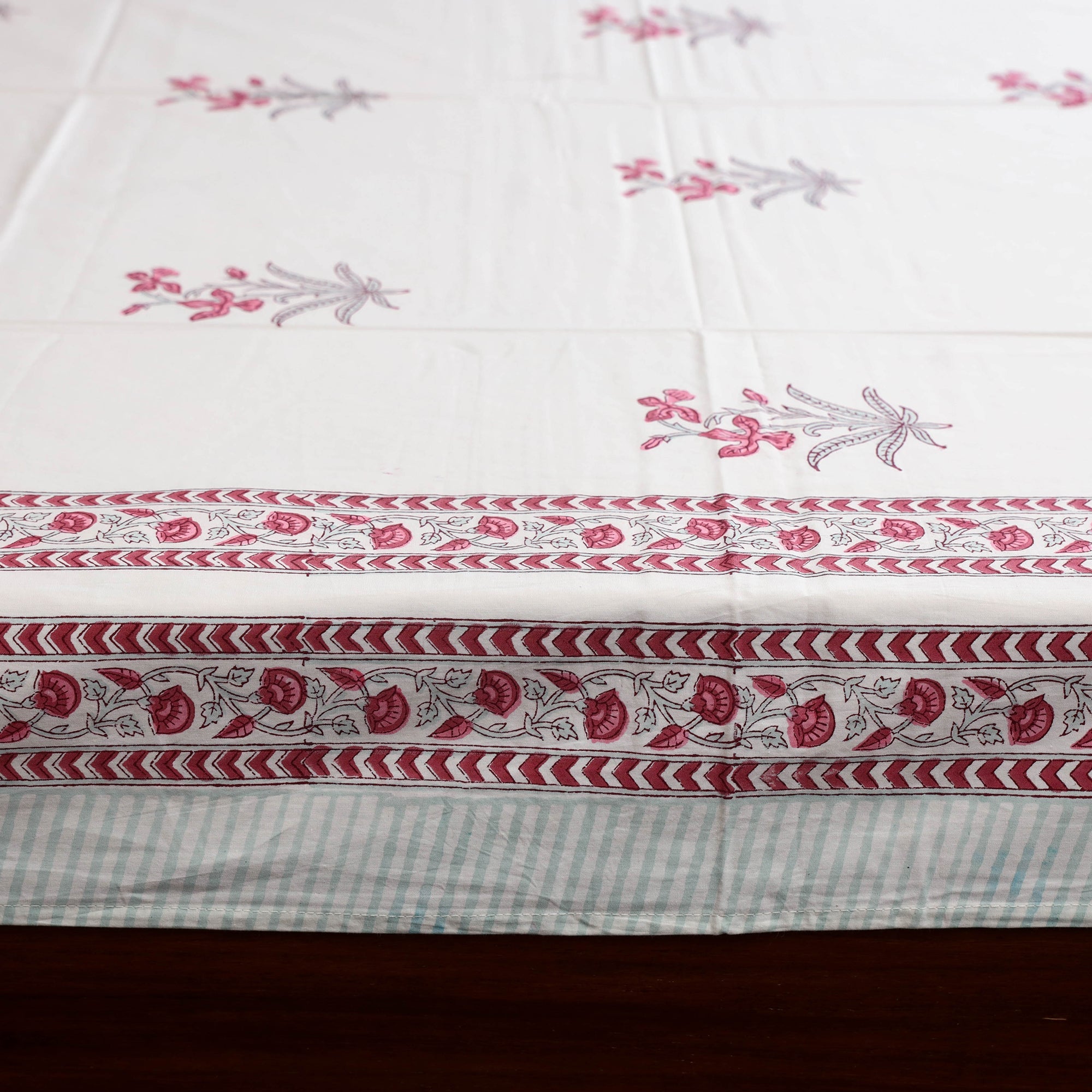 Sanganeri print cotton bed sheet, crafted by artisans of Rajasthan. Made using hand block printing techniques with bleed-free VAT dyes it ensures long-lasting vibrancy. Adorned with floral motifs this single bed sheet is suitable for everyday use.