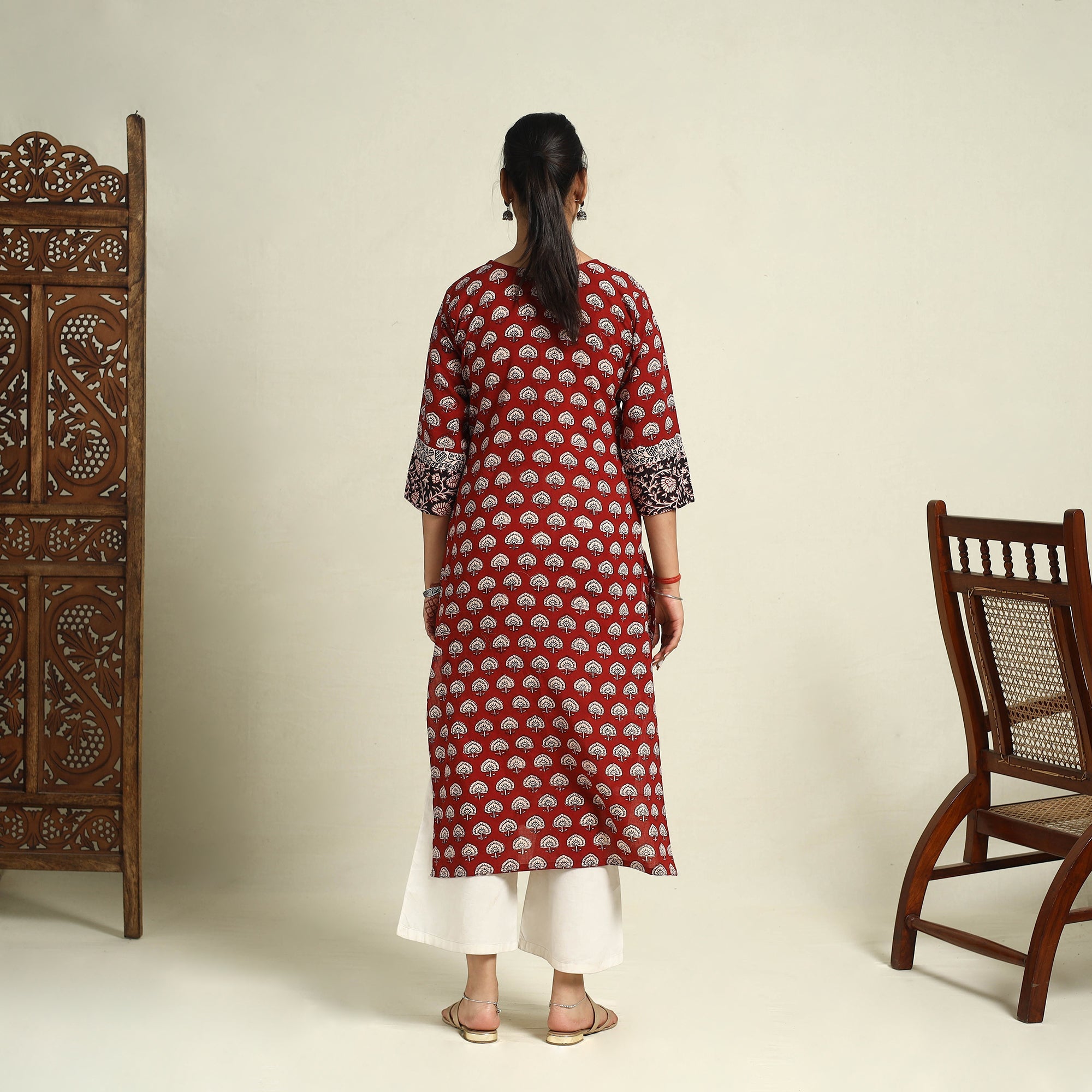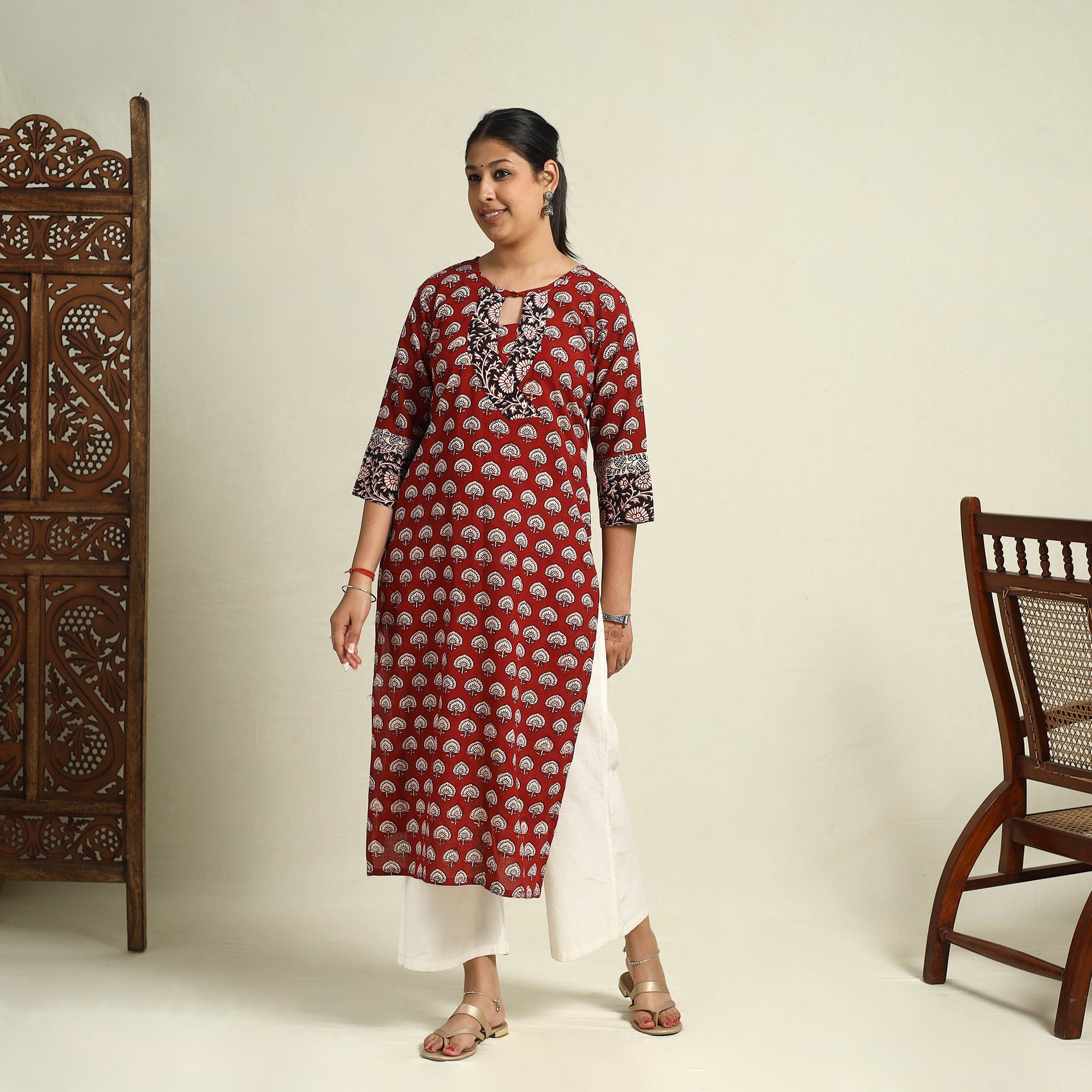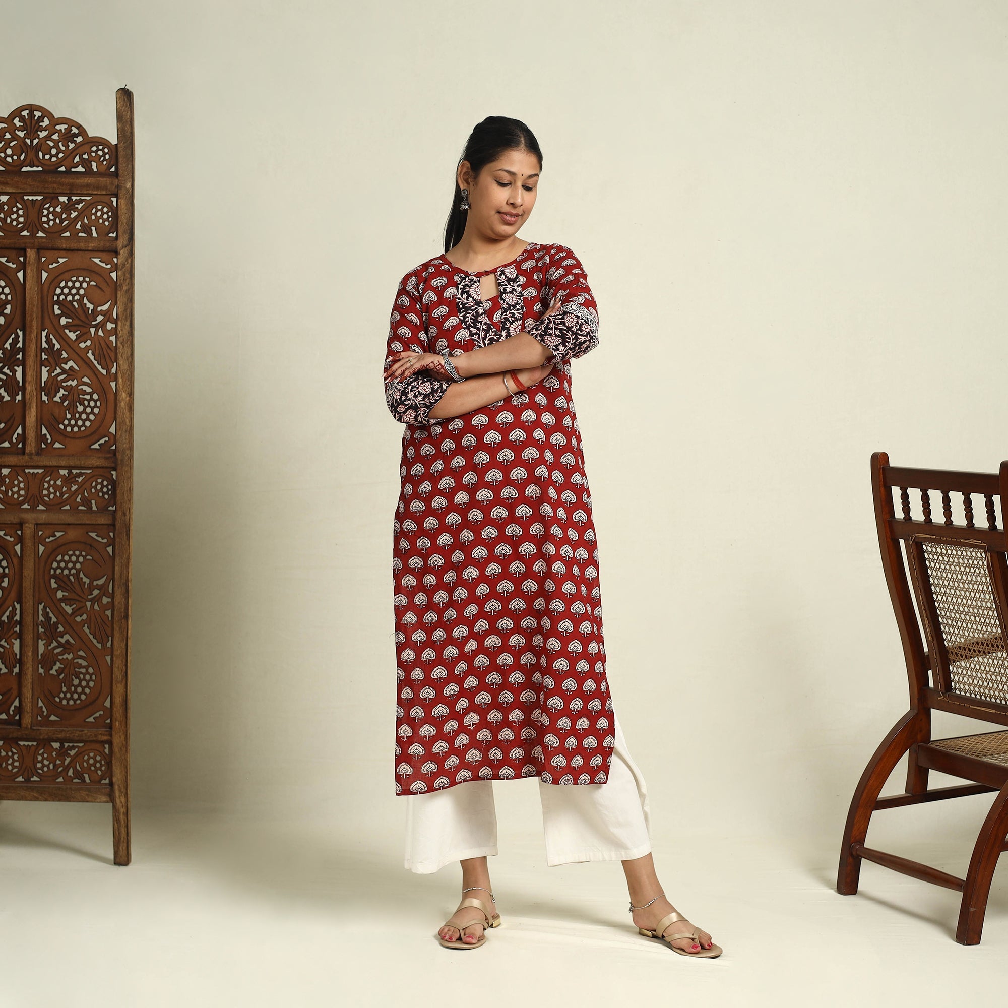 Add a cultural touch to your style with this red block print mul cotton red straight bagh kurta. Handcrafted using the traditional bagh block printing technique, each design showcases intricate and vibrant patterns. Made from soft, breathable cotton and dyed with eco-friendly natural colors, this kurta offers a seamless blend of comfort and timeless elegance. Featuring a convenient side pocket, it’s perfect for casual outings or festive moments an essential addition to your wardrobe.