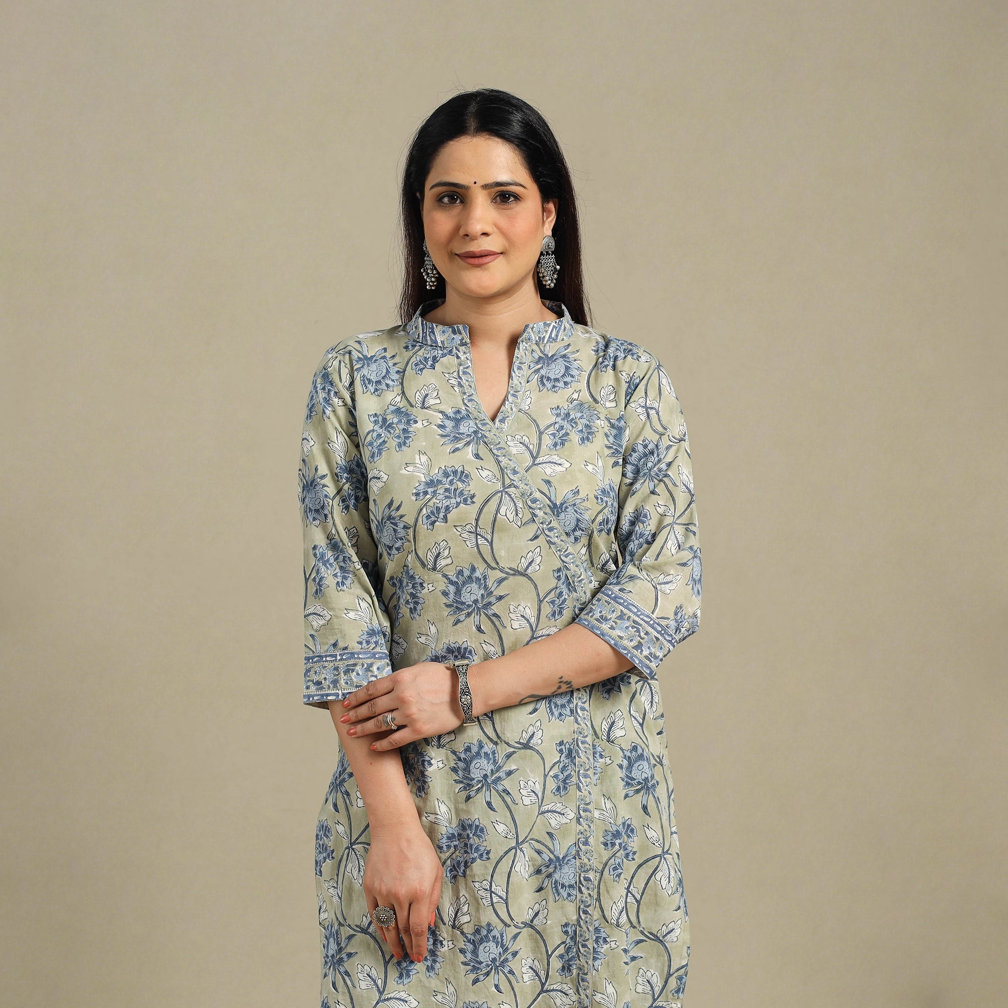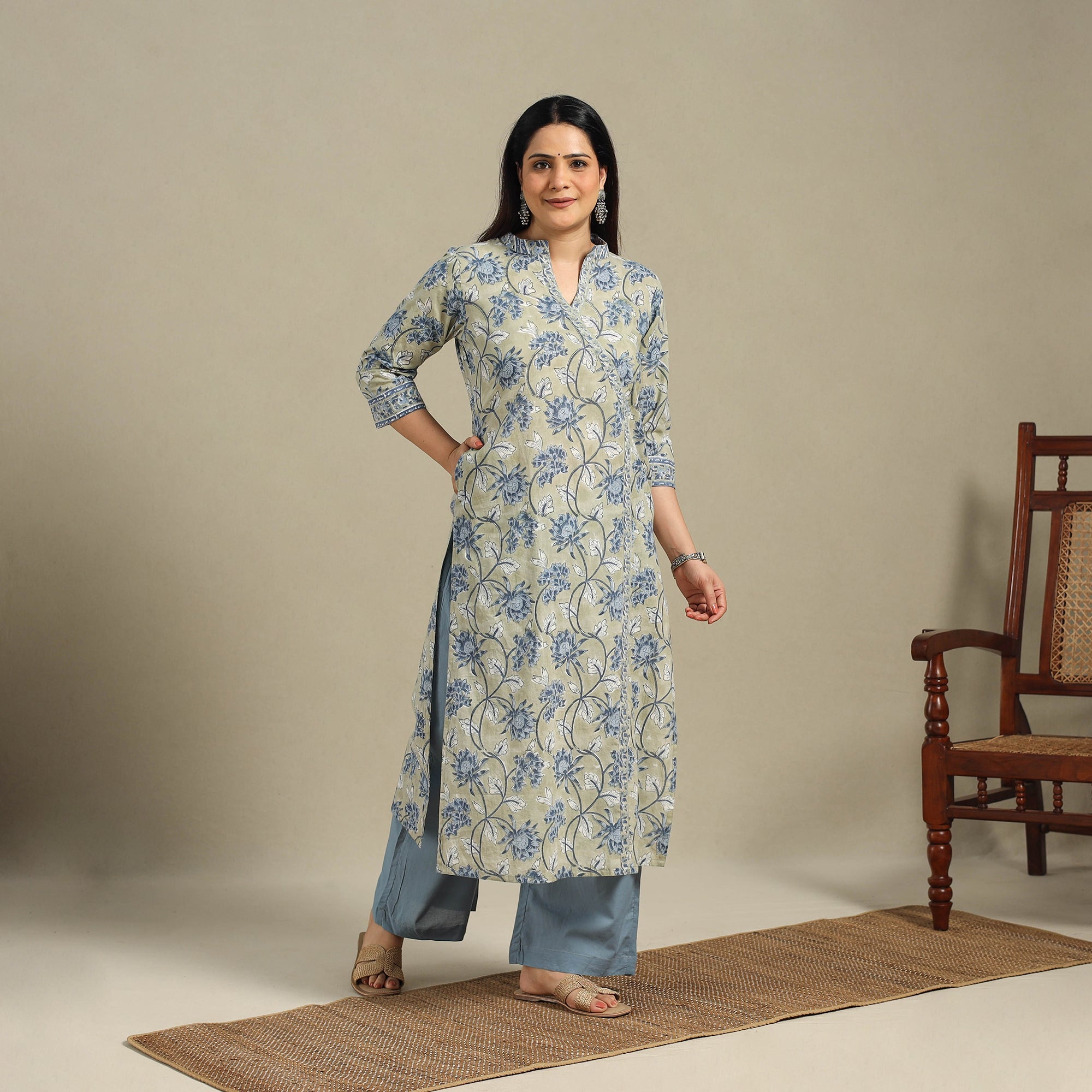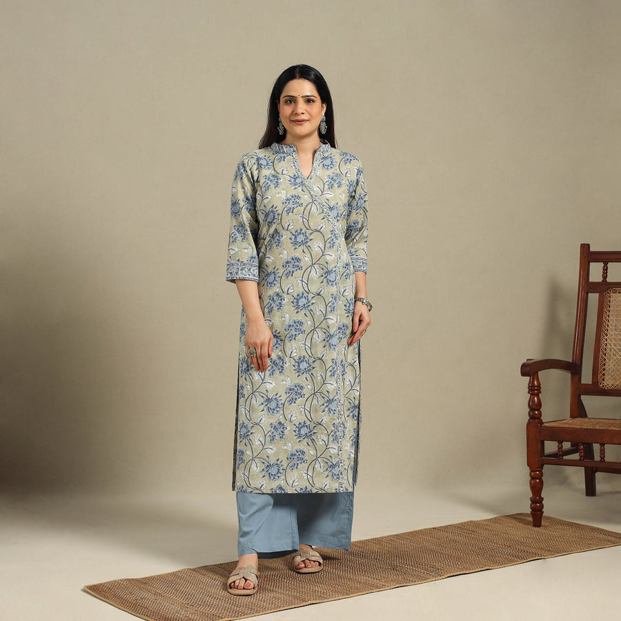 This green sanganeri block-printed straight kurta is made from soft, breathable cotton. It features a side pocket and floral motifs created using traditional wooden blocks from Sanganer. Perfect for daily wear, office looks, festive moments, or travel, this kurta blends comfort with effortless style.