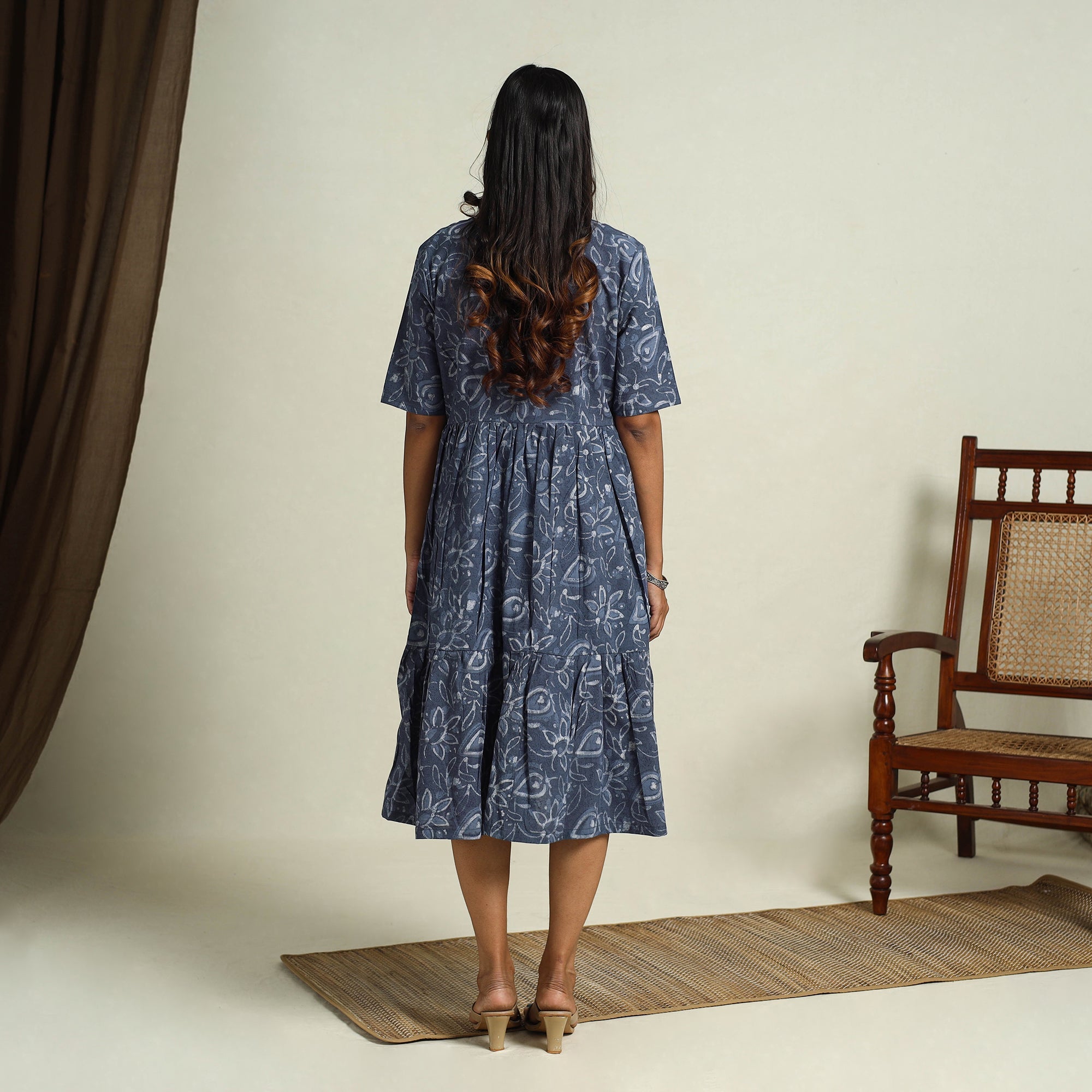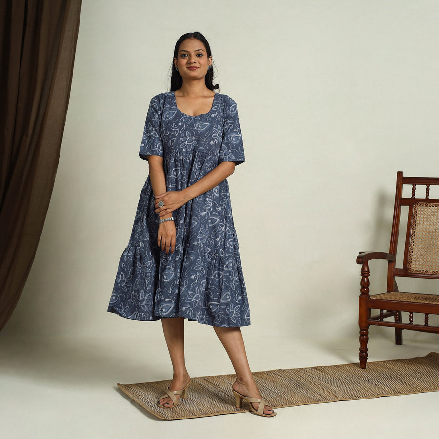 Traditional blue bagru block printing cotton tiered dress. Made from naturally dyed cotton fabric, it’s soft, breathable, and designed to keep you comfortable while enhancing your ethnic style.