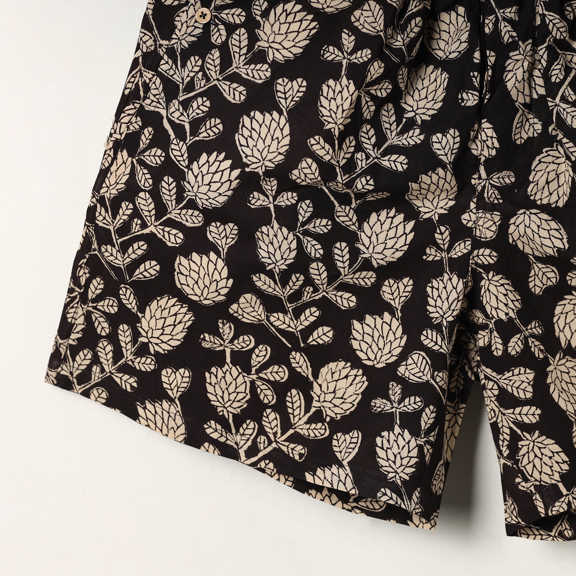 Block print cotton unisex black bagru shorts/boxer are a blend of tradition and comfort, and handcrafted by skilled artisans using the bagru block printing technique. Featuring soft fabric, a durable waistband, and side pockets, these shorts offer breathability and style for everyday wear. They are also suitable for sleeping and lounging, making them a versatile addition to your wardrobe.