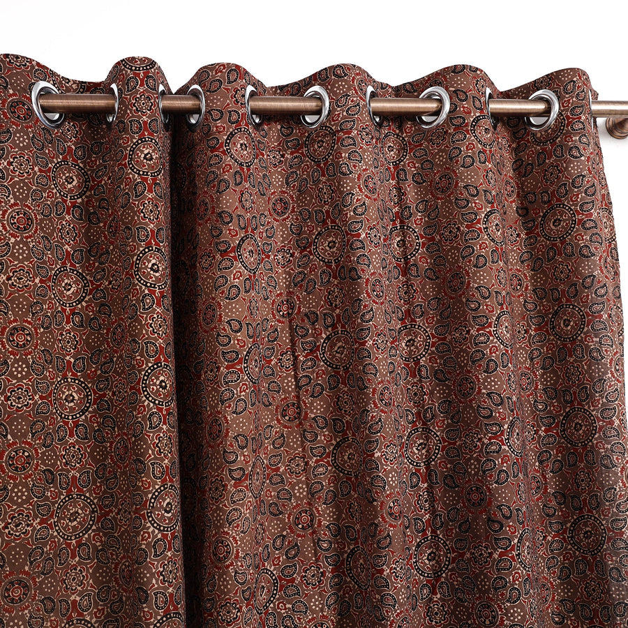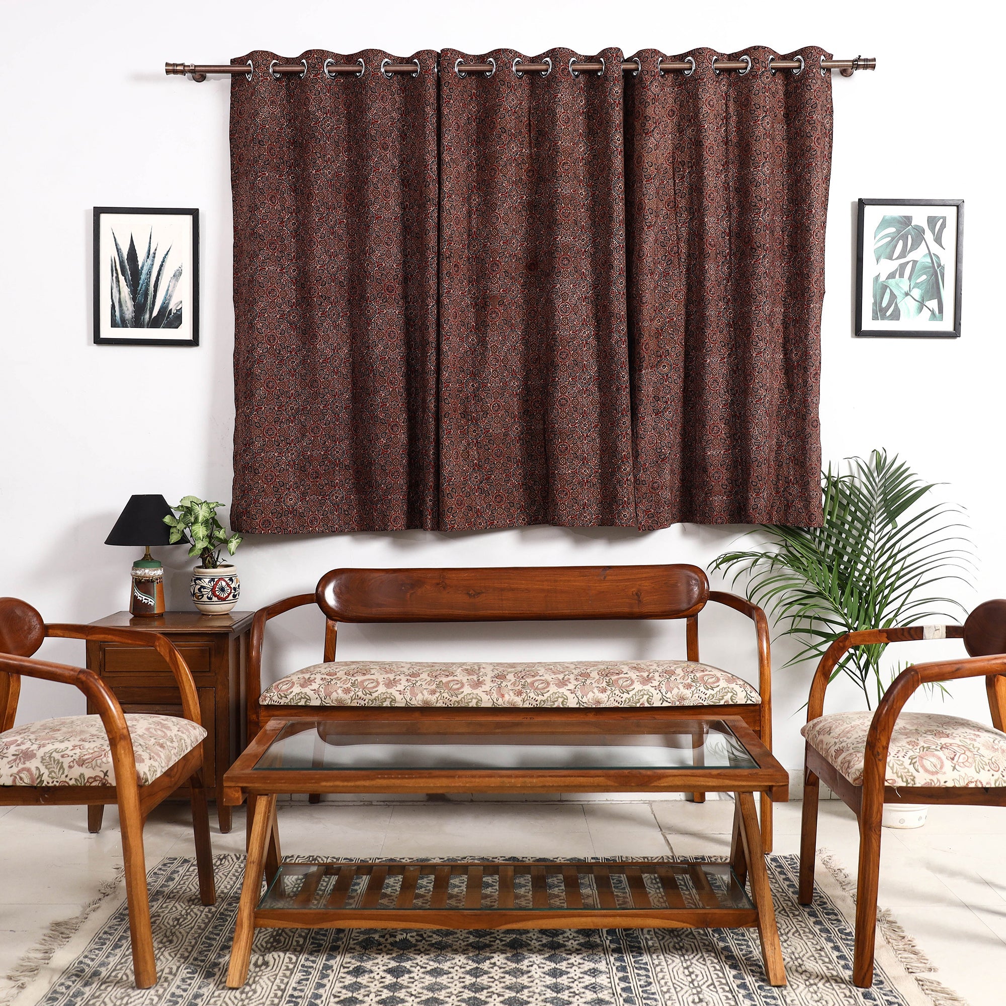 Enhance your home with block print cotton brown ajrakh window curtains, bringing timeless elegance and heritage to your decor. Made from cotton, these curtains showcase intricate block printed motifs, crafted using traditional ajrakh techniques. Perfect for windows, they add a refined touch to any space.