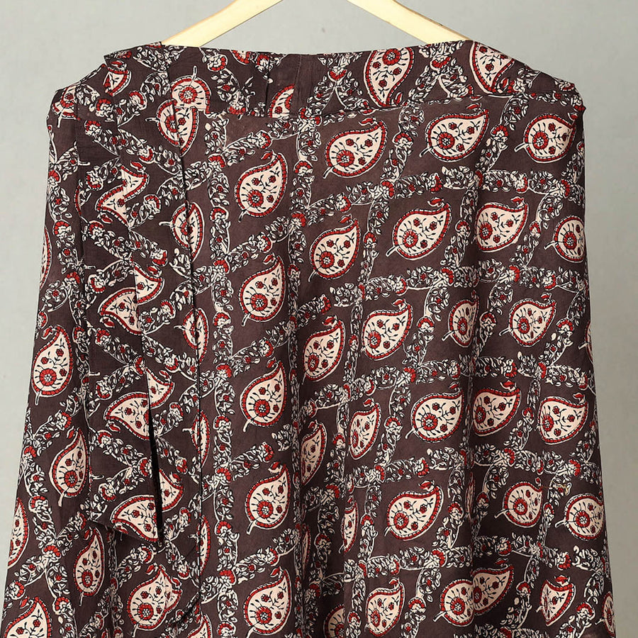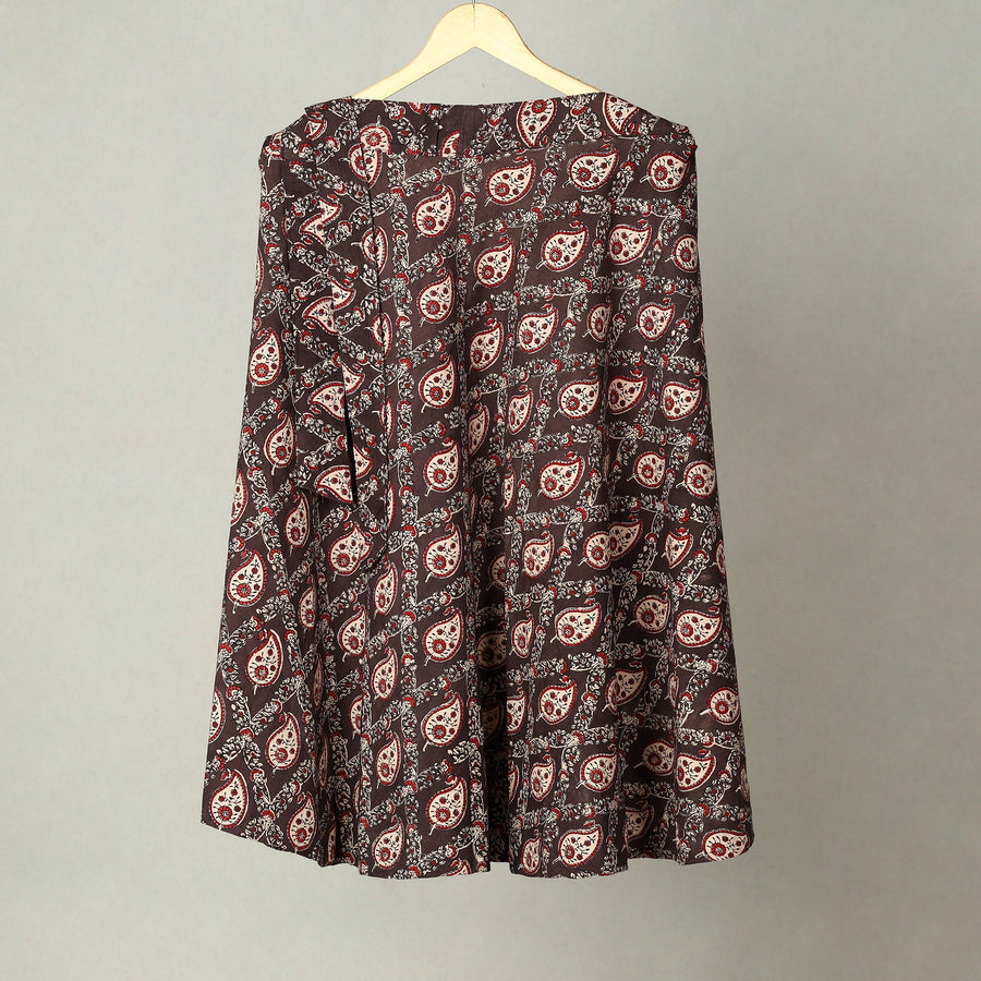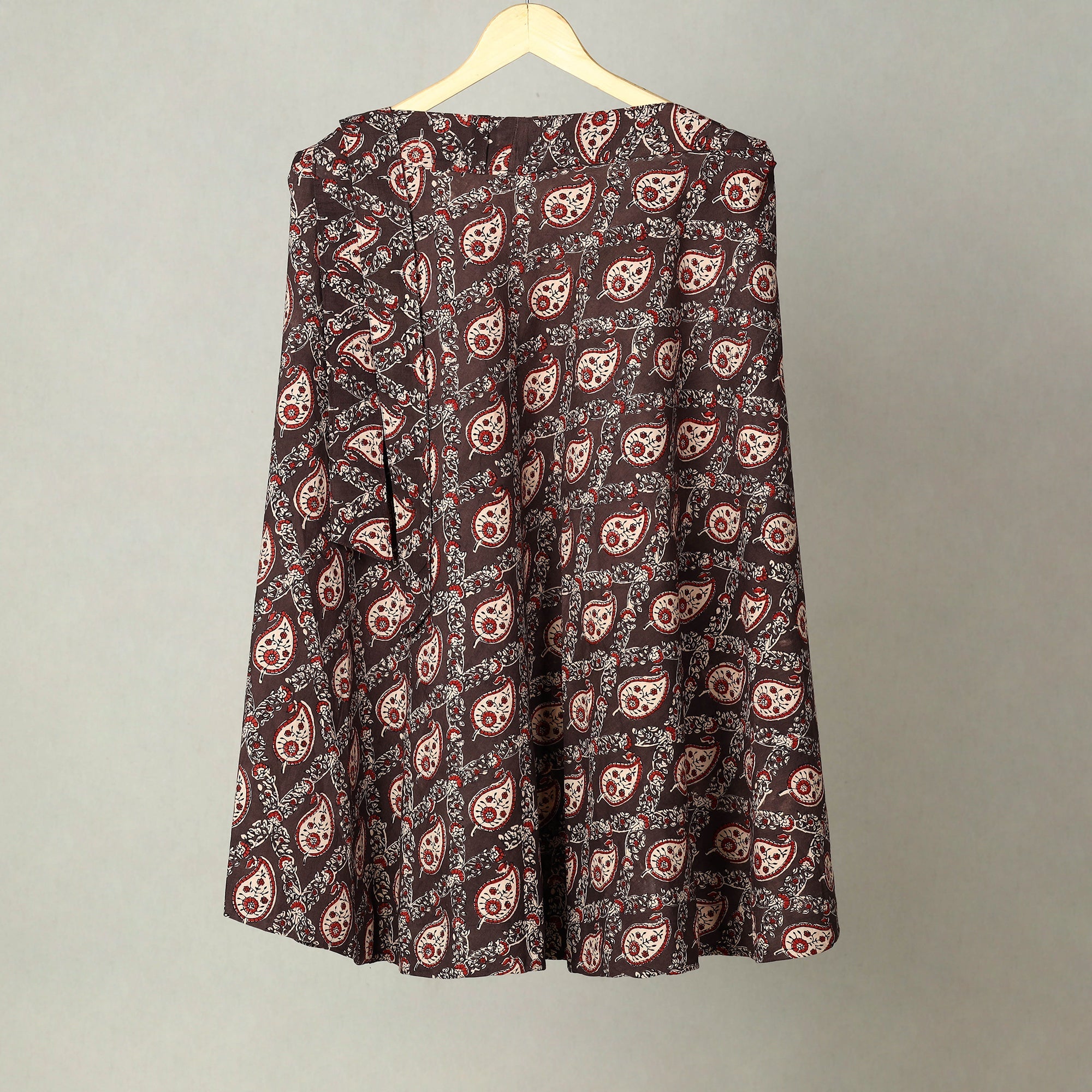 Enhance your wardrobe with our brown block print cotton wrap around ajrakh skirt, handcrafted by skilled artisans in the Kutch region of Gujarat. Featuring a wrap-around style with a waist tie closure, this skirt is made using eco-friendly natural dyes and traditional Ajrakh block printing techniques. Its breathable cotton fabric ensures comfort, perfect for casual outings.
