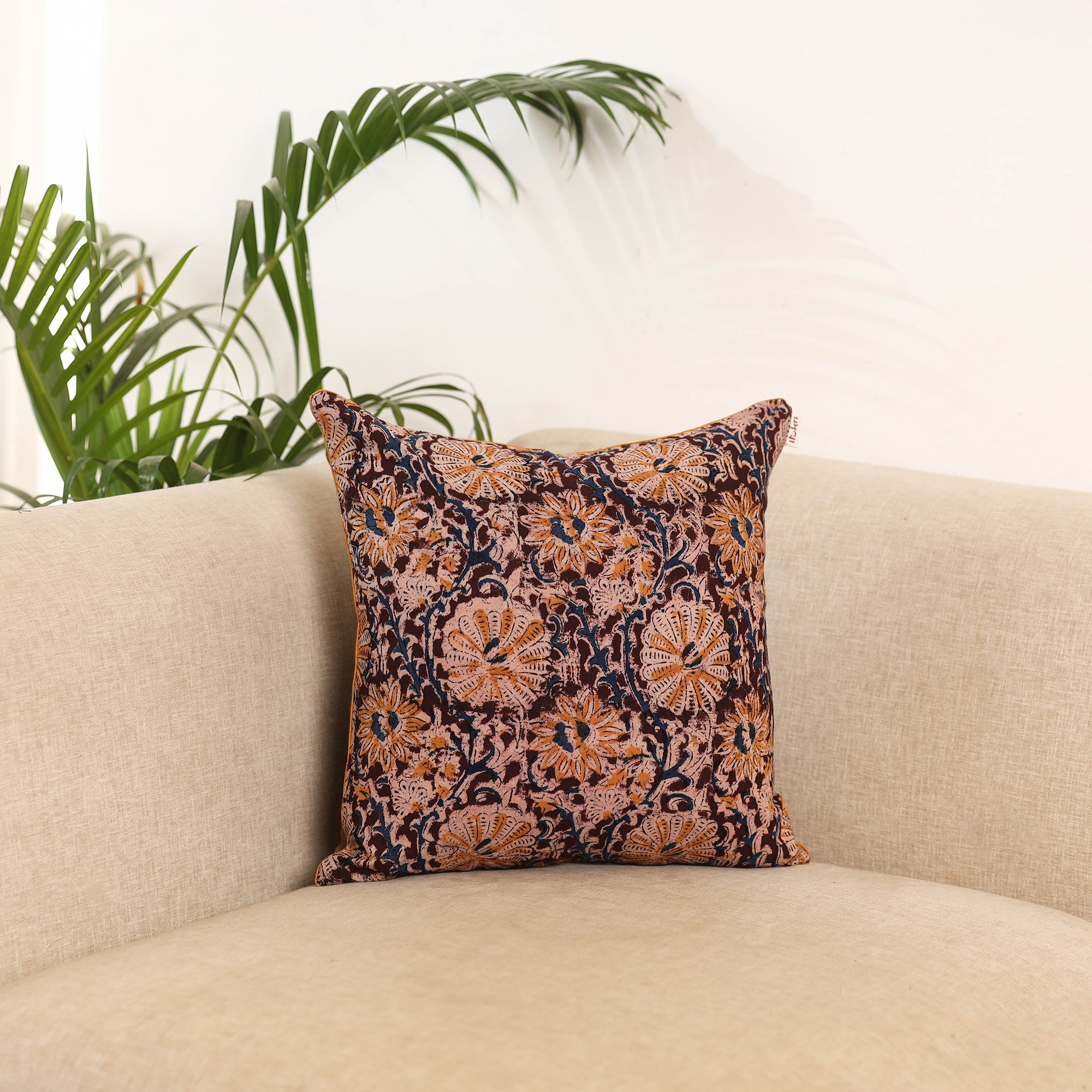 Maroon hand block print kalamkari cushion cover, crafted from cotton and traditional Indian handmade textiles. It blends artistry with comfort, making it perfect for your sofa, bed or lounge area.