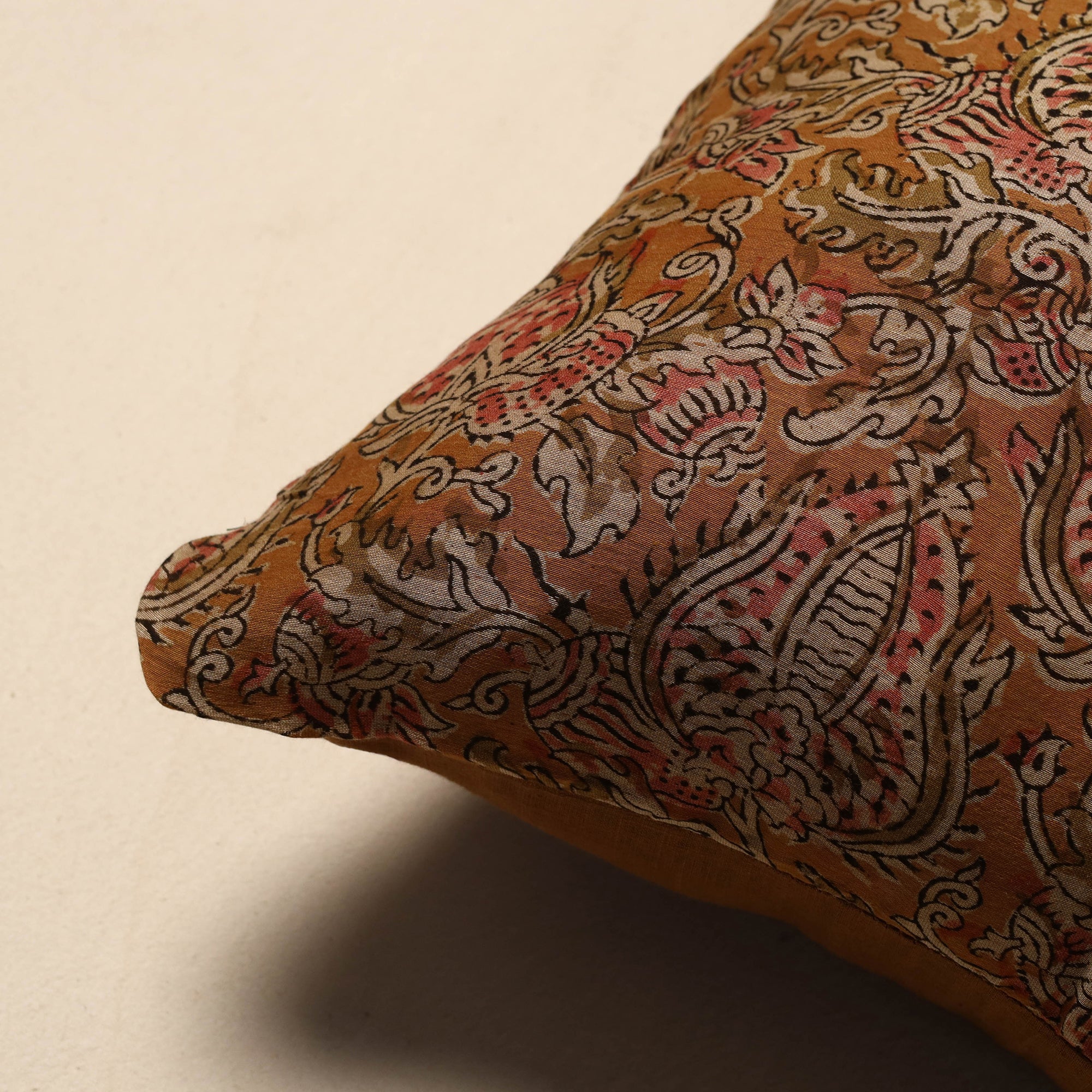 Hand block print kalamkari cushion cover, crafted from chanderi silk and traditional Indian handmade textiles. It blends artistry with comfort, making it perfect for your sofa, bed or lounge area.