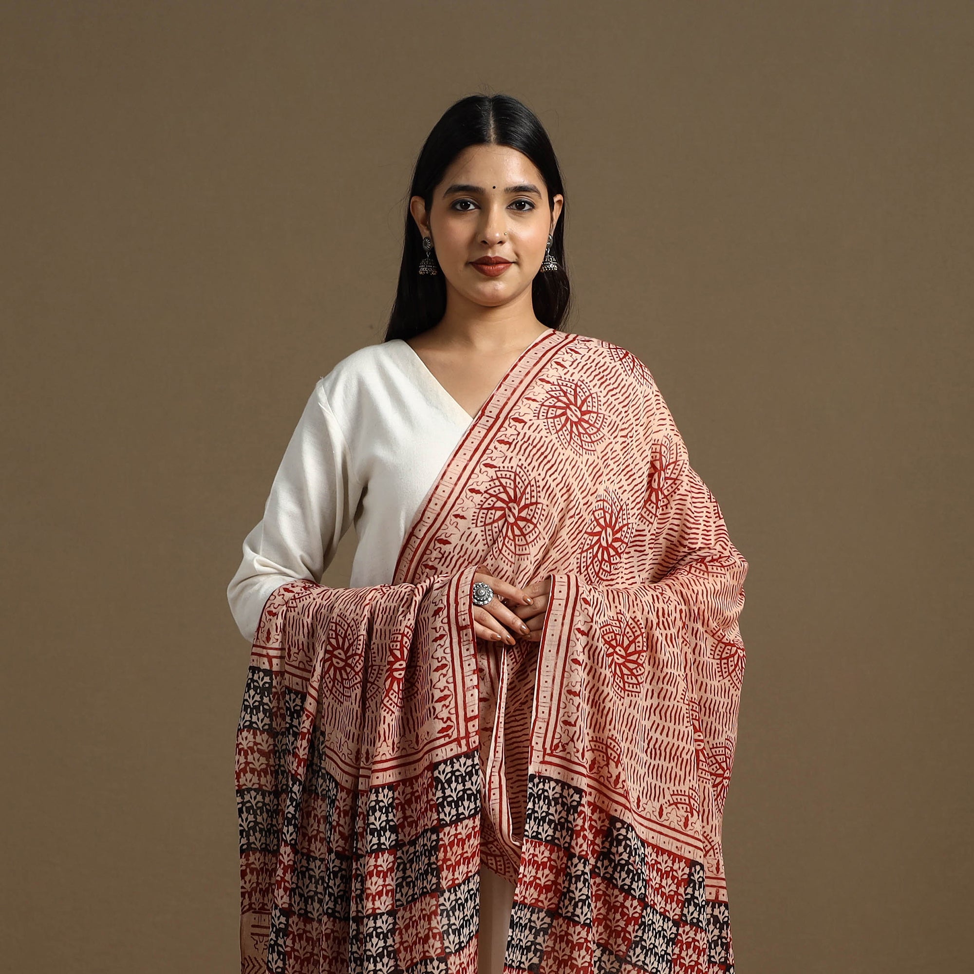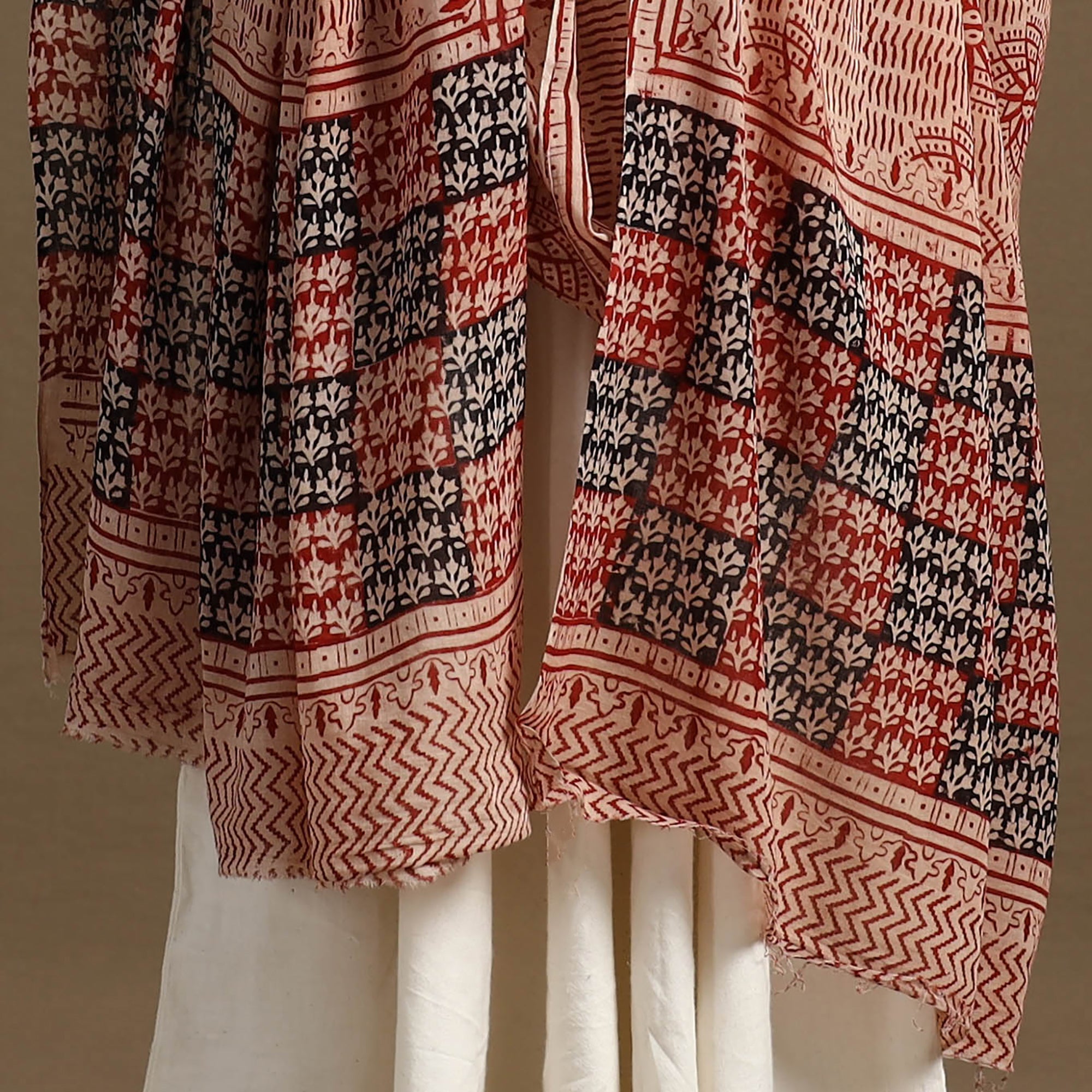 This beige bagru block-printed mul cotton dupatta is crafted using the traditional clay resist technique with hand-carved wooden blocks from Bagru, Rajasthan. Featuring intricate patterns and a lightweight texture, it seamlessly blends tradition with elegance. Perfect for both casual outings and festive occasions, this dupatta is a timeless addition to any wardrobe.