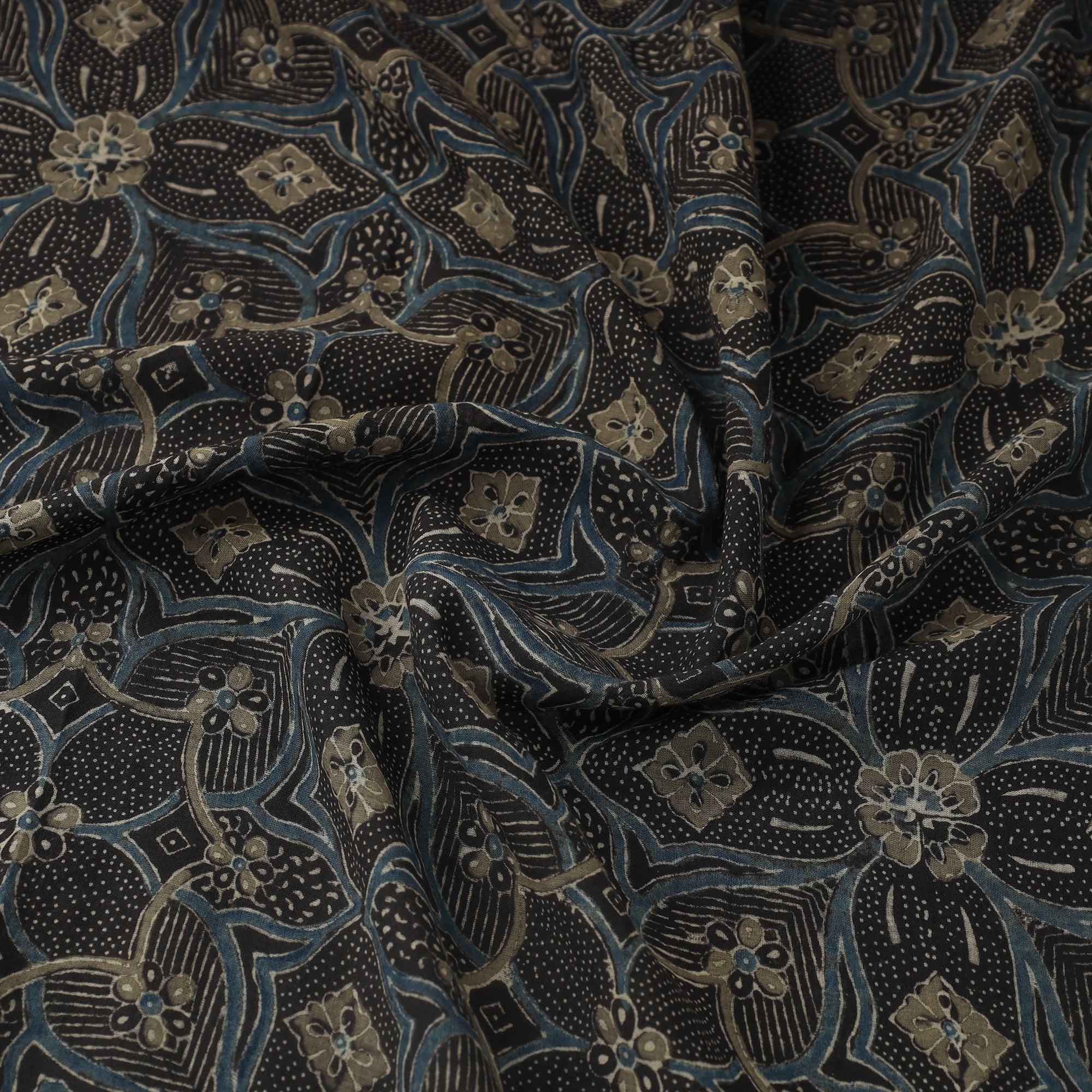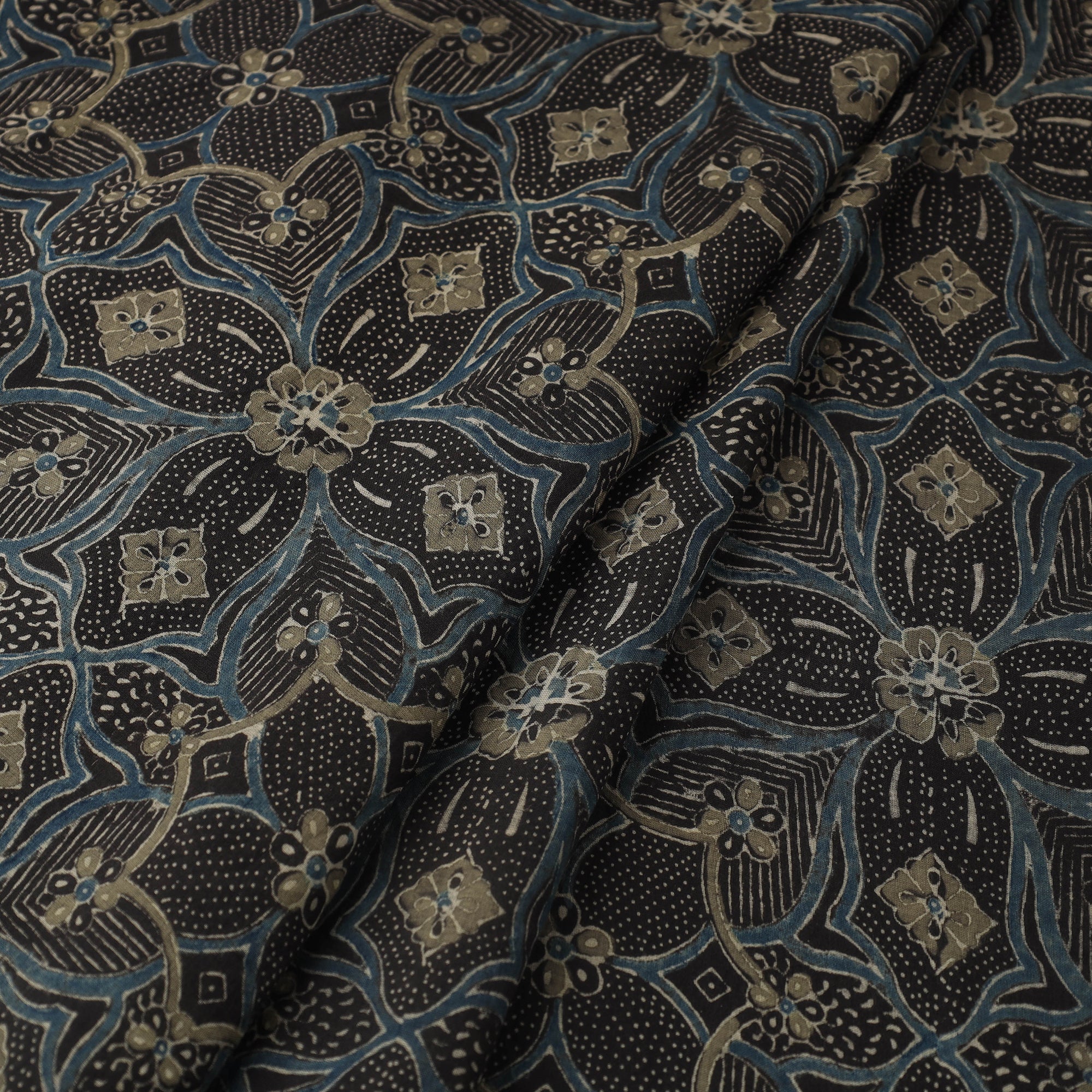Handcrafted in Kutch by artisan Sufiyan Ismail Khatri, this blue mul cotton ajrakh fabric features intricate block prints made using carved wooden blocks and natural dyes. The patterns reflect centuries-old traditions from the region. Soft, breathable, and versatile, it's perfect for kurtas, dresses, or blouses. An authentic Indian textile that celebrates the legacy of ajrakh printing.