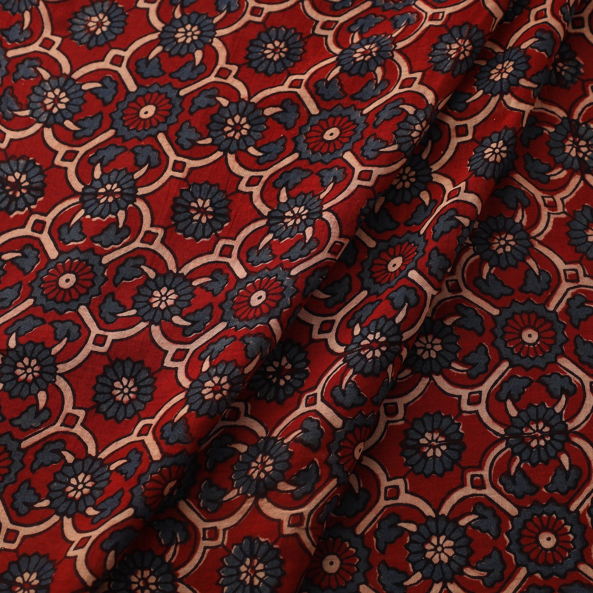 Handcrafted in Kutch by artisan Sufiyan Ismail Khatri, this red mul cotton ajrakh fabric features intricate block prints made using carved wooden blocks and natural dyes. The patterns reflect centuries-old traditions from the region. Soft, breathable, and versatile, it's perfect for kurtas, dresses, or blouses. An authentic Indian textile that celebrates the legacy of ajrakh printing.