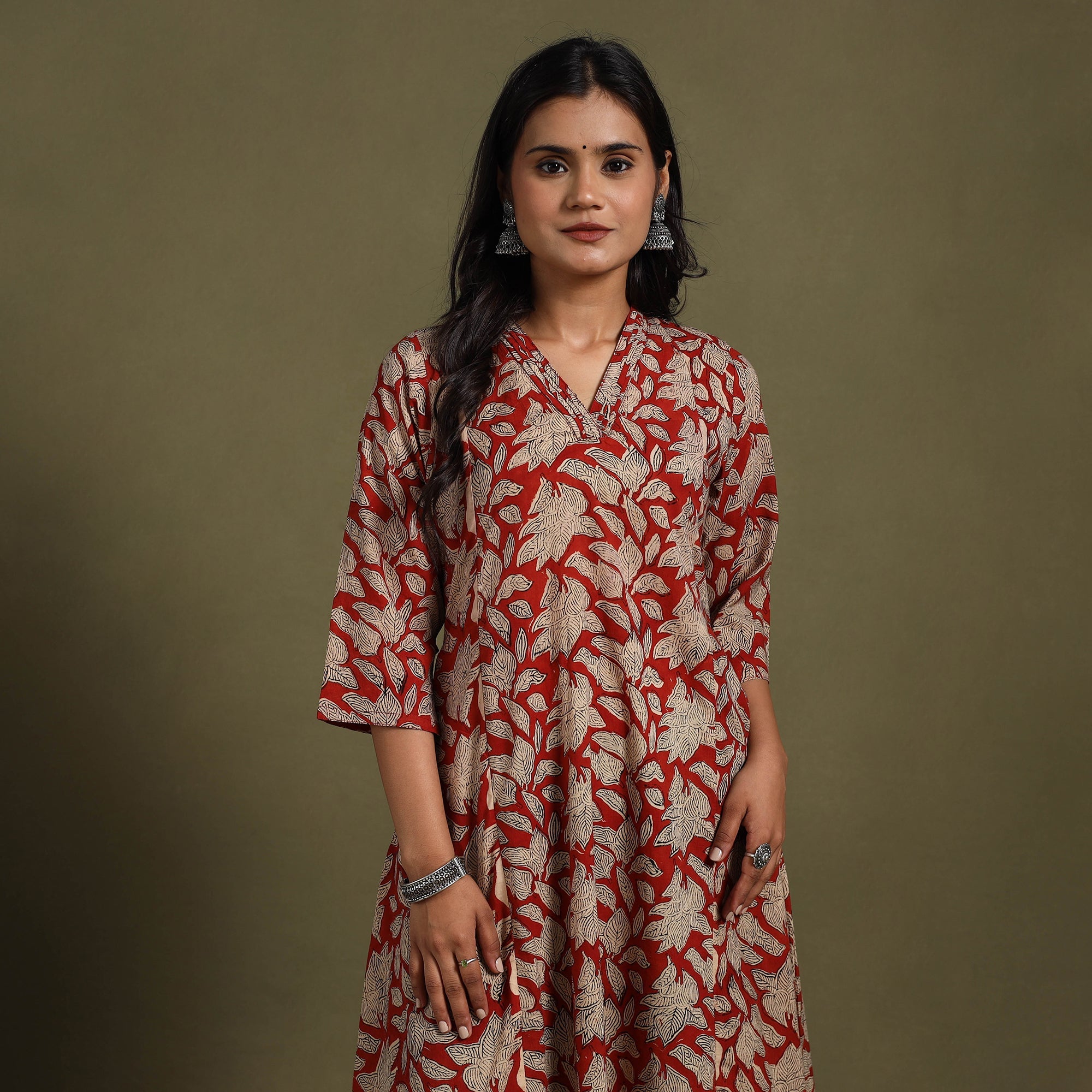 This red bagru hand block printed kurta is crafted from naturally dyed cotton fabric using the traditional mud-resist technique in Bagru, Rajasthan. Intricate patterns are created by skilled artisans using finely carved wooden blocks. Featuring a convenient side pocket, this A-line kurta blends style with practicality. Perfect for any occasion, its breathable cotton fabric ensures all-day comfort.