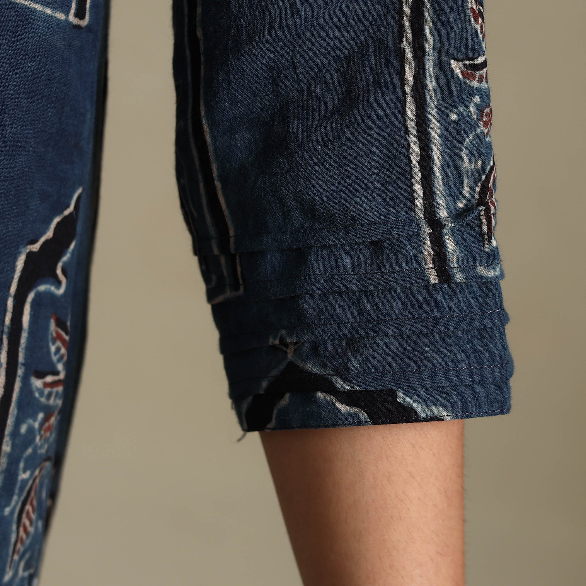 Each piece is hand block printed and dyed using natural colors over a slow process of 15–20 days. As a result, you may notice slight variations in color, mild pigment smudges, or irregular dye patterns, these are not defects. They’re gentle marks of authenticity, proudly bearing the touch of human hands, heritage, and nature’s own palette. Wear them like a signature, because no two pieces are ever alike.
