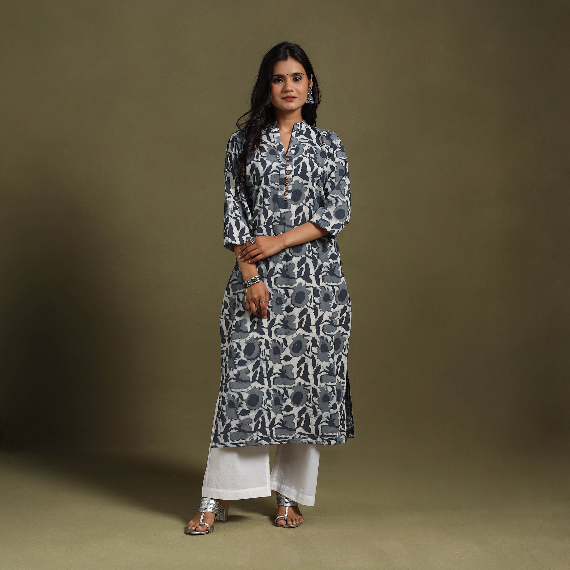 This jahota hand block printed kurta is crafted from naturally dyed cotton fabric using the traditional mud-resist technique in Rajasthan. Intricate patterns are created by skilled artisans using finely carved wooden blocks. Featuring a convenient side pocket, this straight kurta blends style with practicality. Perfect for any occasion, its lightweight cotton ensures all-day comfort.