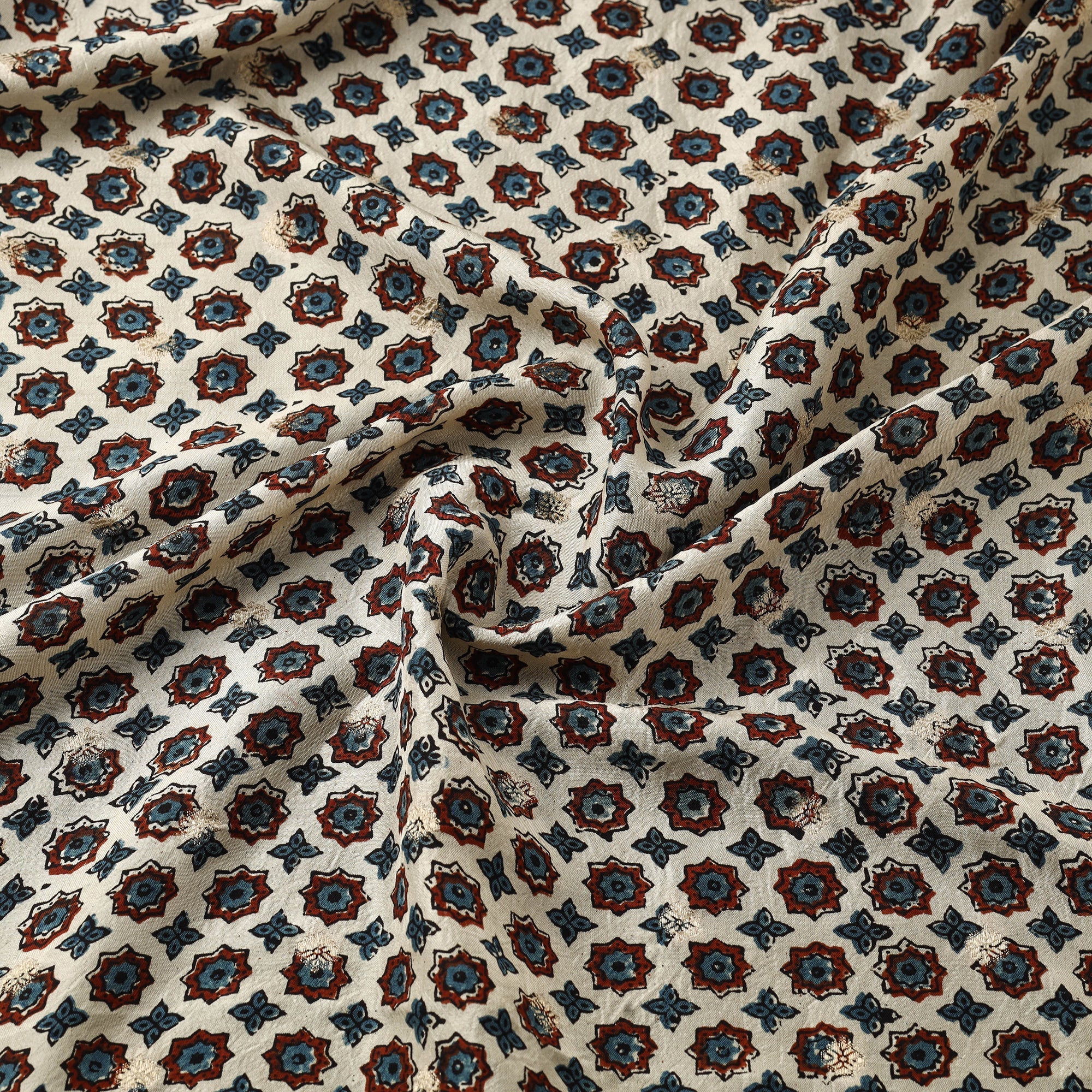 Ajrakh is a well-known traditional vegetable dyeing that resists block-printing techniques on cloth. Originated in Kutch, It is nearly around 4,500 years old practised by Khatri community of Kutch and Sikh.