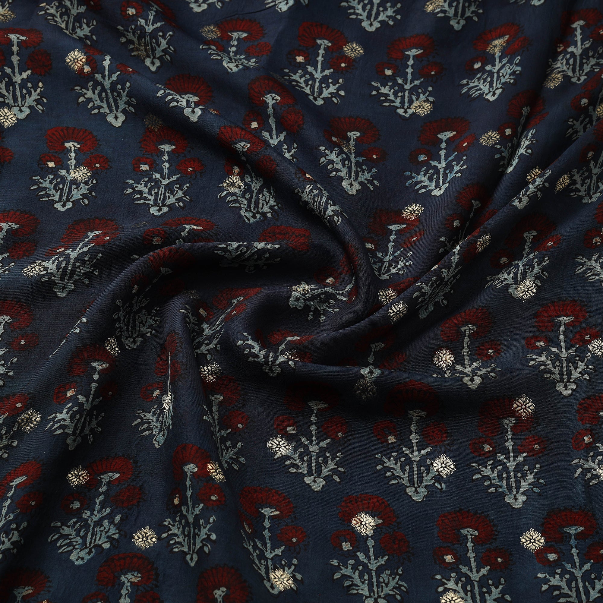 • Block Print Natural Dyed Dola Silk Jacquard Buti Ajrakh Fabric 16