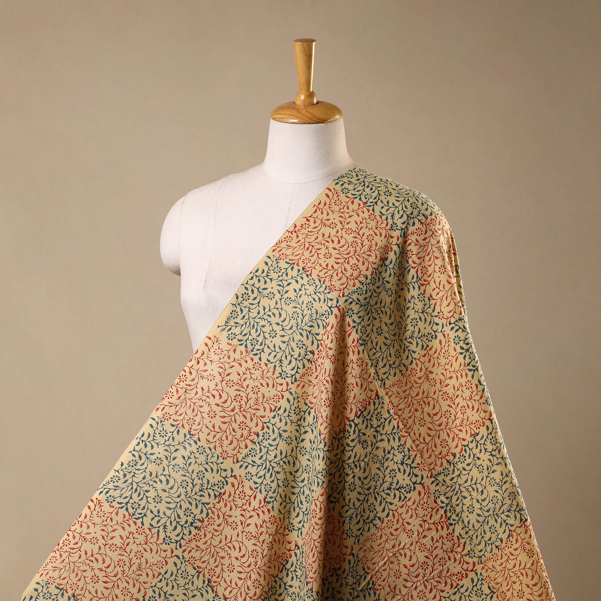 This beige sanganeri fabric from Rajasthan is crafted using the traditional block-printing techniques of Sanganer. The slub cotton base showcases detailed hand-printed floral motifs, offering both comfort and durability. Ideal for garments, soft furnishings, and creative DIY projects, it brings a timeless Rajasthani charm to your creations.