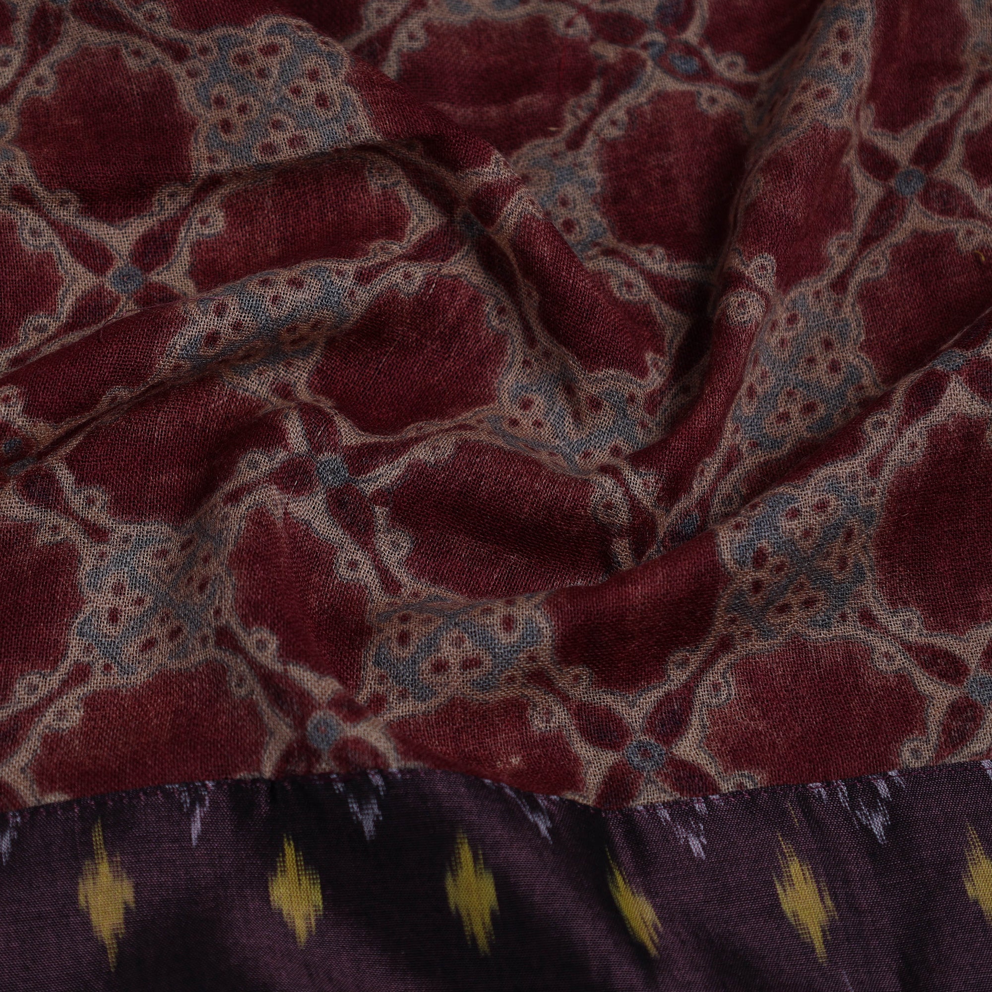 Ajrakh is a well-known traditional vegetable dyeing that resists block-printing techniques on cloth. Originated in Kutch, It is nearly around 4,500 years old practised by Khatri community of Kutch and Sikh.