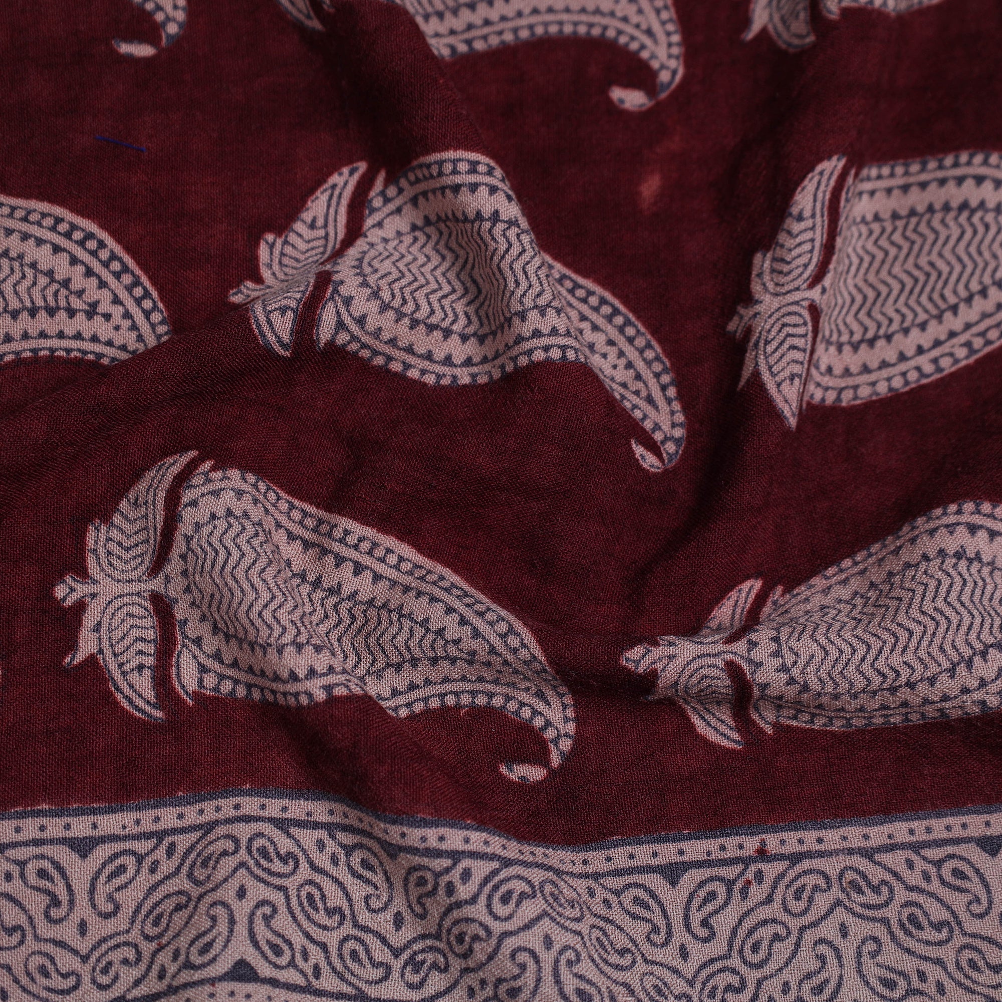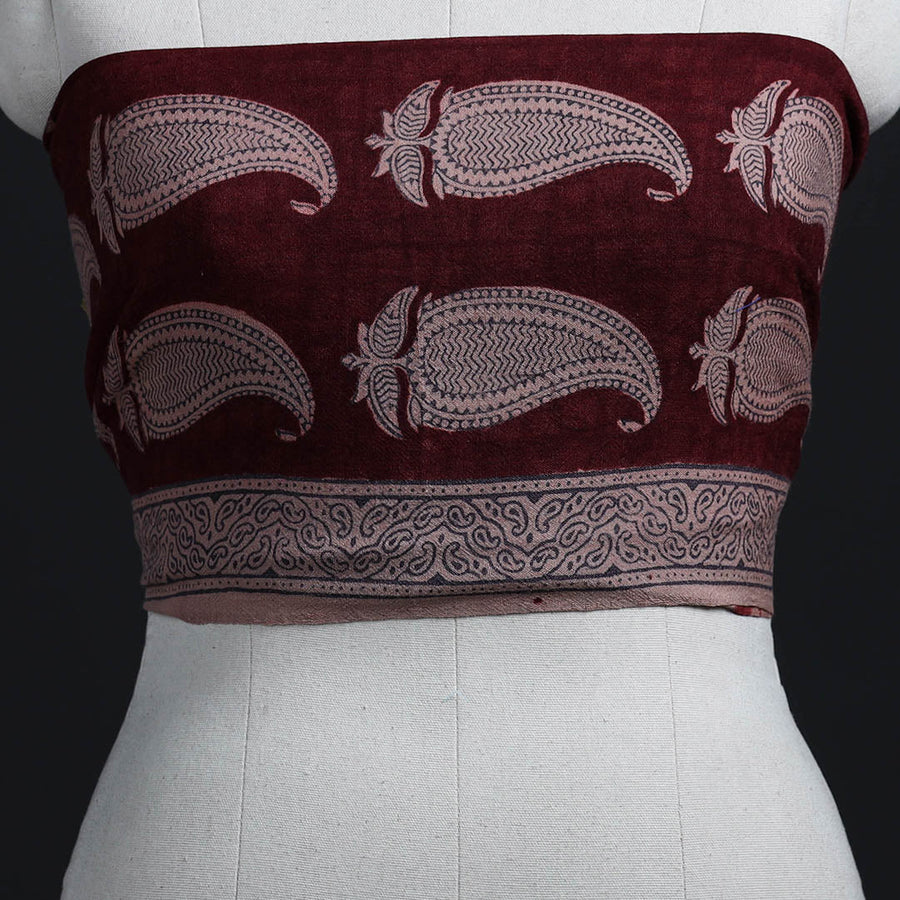 Stay warm with our maroon block print woollen bagh blouse piece. Handcrafted from traditional bagh wool textiles, it showcases intricate block print. Perfect for winter wear, this blouse effortlessly combines comfort with unique cultural artistry.