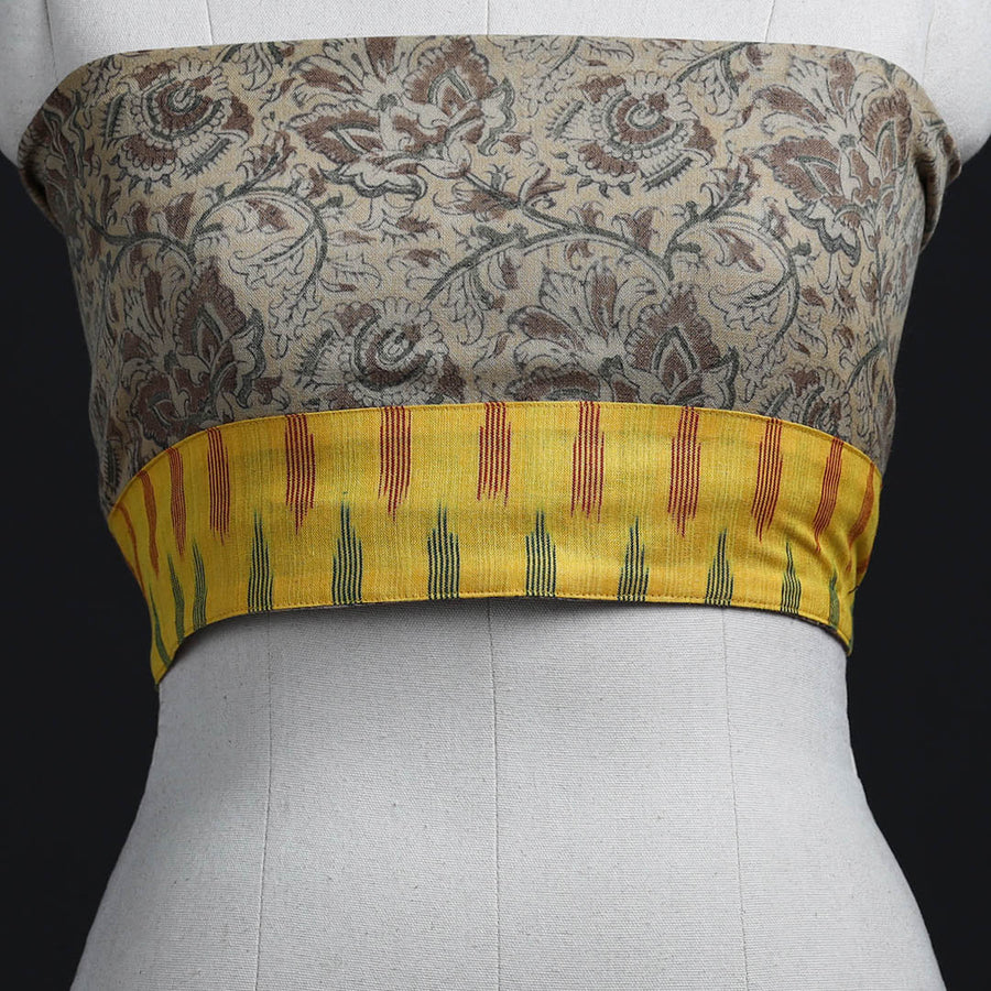 Material Stay warm with our beige block print woollen kalamkari blouse piece. Handcrafted from traditional kalamkari wool textiles, it showcases intricate block print. Perfect for winter wear, this blouse effortlessly combines comfort with unique cultural artistry.