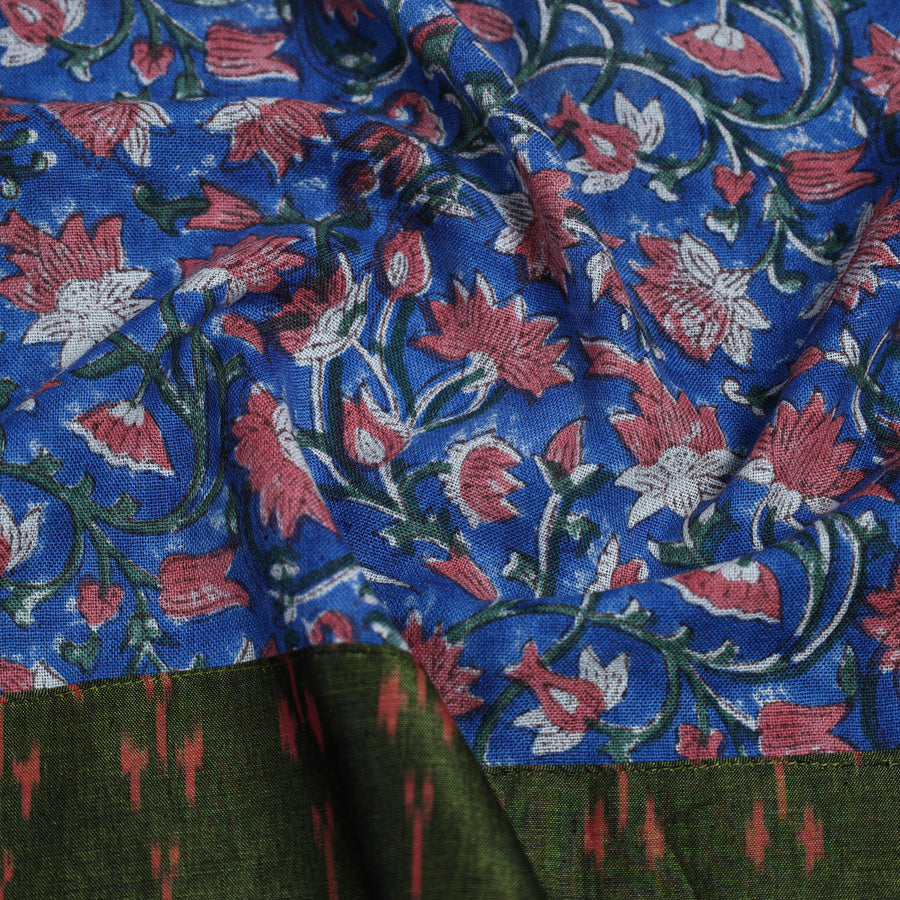 Blue - Block Print Woollen Sanganeri Blouse Piece 71