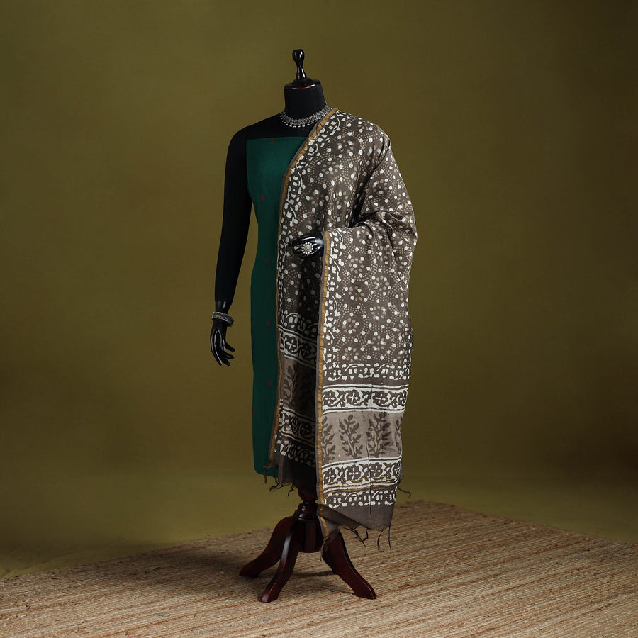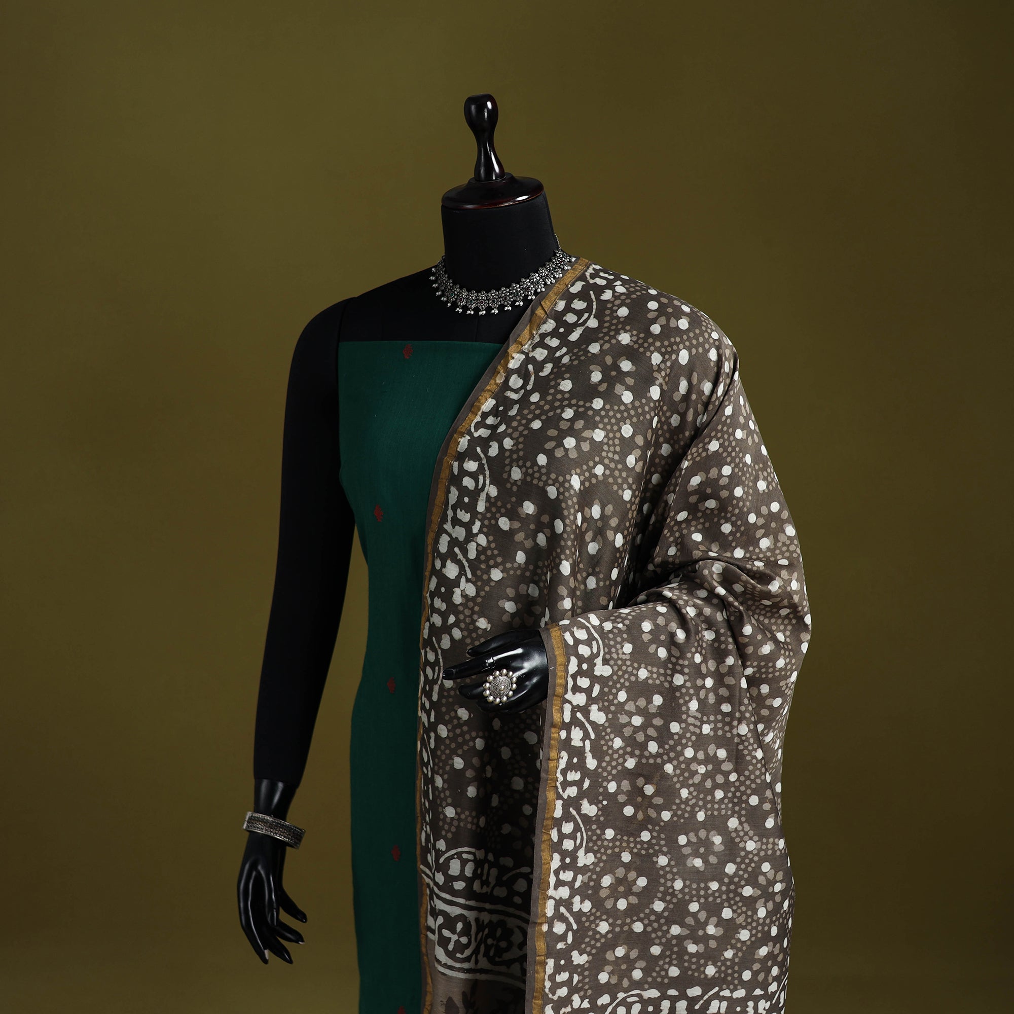 Experience the charm of this brown block-printed chanderi silk bagru dupatta with zari border. Made using the mud resist technique and rapid colors, artisans create beautiful bagru prints that beautifully combine cultural artistry with modern elegance. This dupatta ideal for both casual and festive occasions