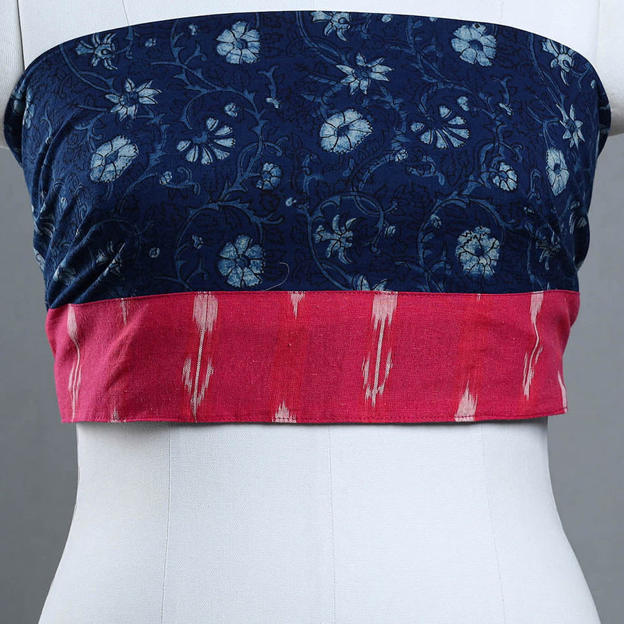 Experience the timeless beauty of blue block printed cotton akola blouse piece handcrafted by skilled artisans using traditional methods. Each fabric is a testament to India rich heritage featuring intricate patterns that pair beautifully with sarees.
