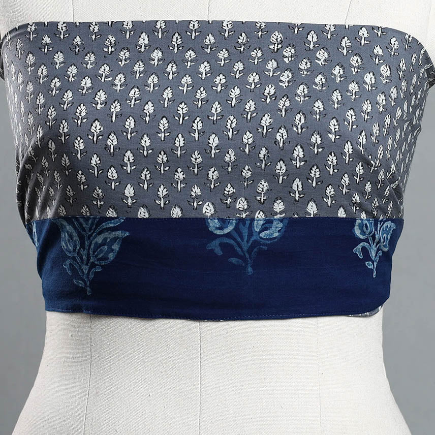 Grey block printed cotton bagru blouse piece is a beautiful blend of tradition and comfort. Made from cotton, each piece is crafted by artisans using the age-old bagru printing technique. The soft fabric ensures comfort while the vibrant prints add elegance and style. this blouse piece is perfect for pairing with any saree or skirt.