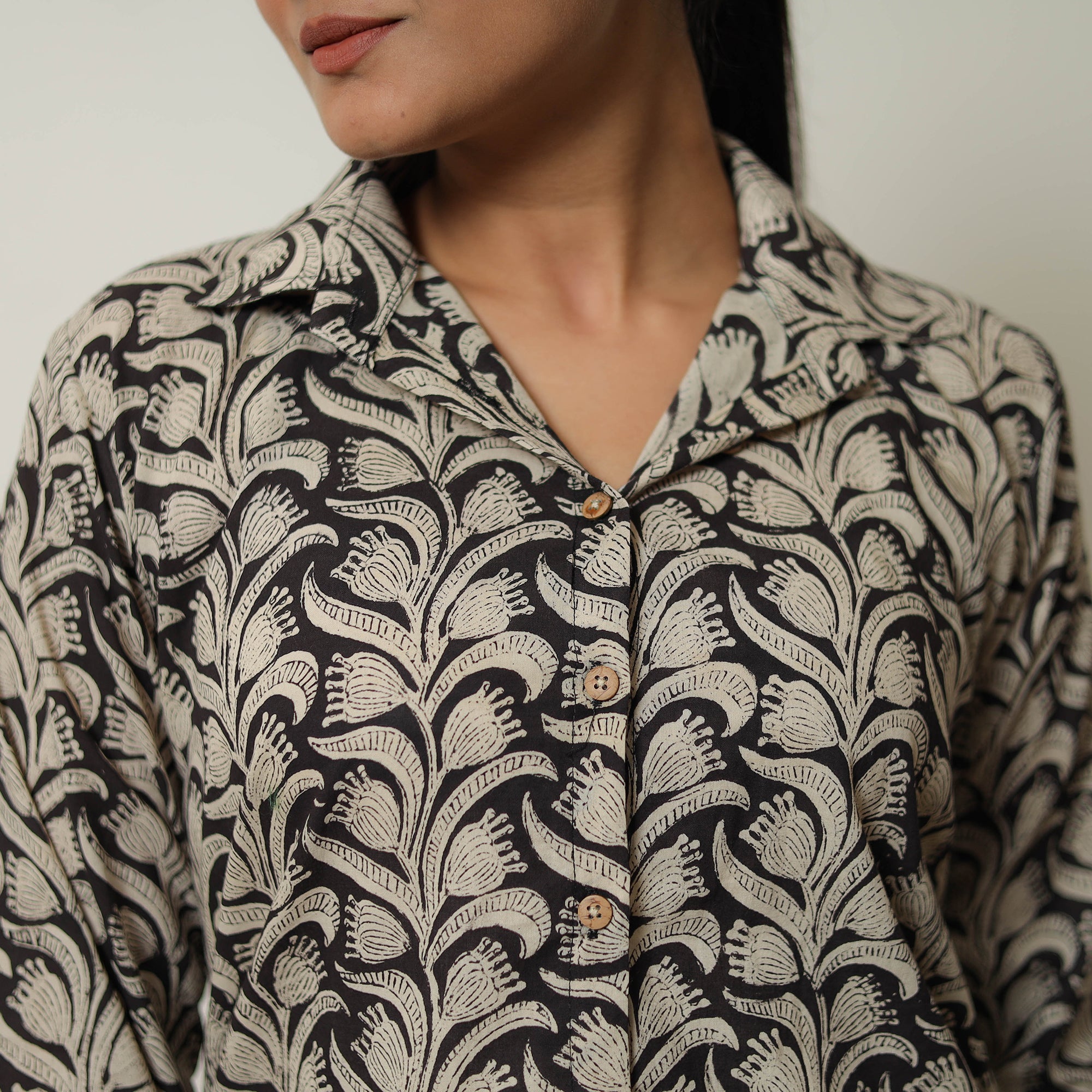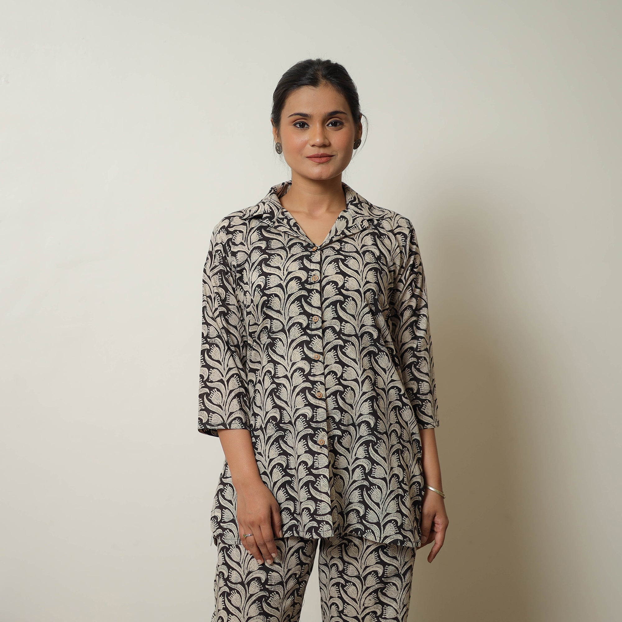 Stay stylish with our grey hand block-printed cotton bagru co-ord set. Made from block-printed cotton fabric. The elasticized waist pant ensures a great fit, while the two side pockets add functionality to this pant. The unique design ensures a beautiful and comfortable fit.