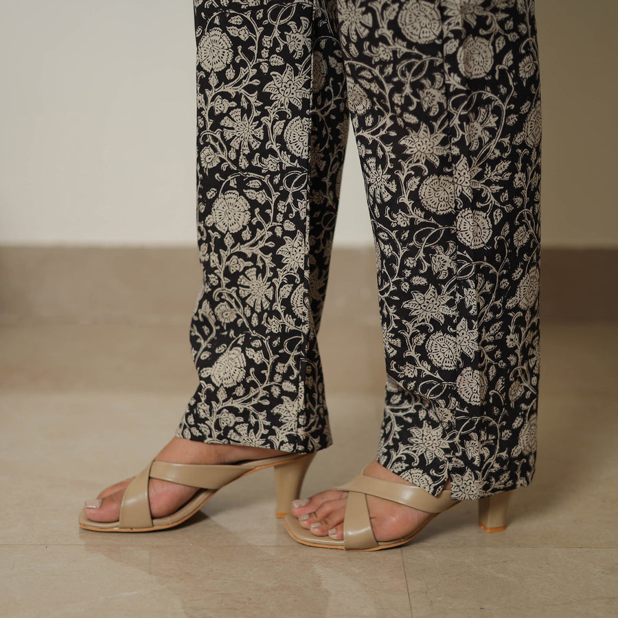 Stay stylish with our black hand block-printed cotton bagru co-ord set. Made from block-printed cotton fabric. The elasticized waist pant ensures a great fit, while the two side pockets add functionality to this pant. The unique design ensures a beautiful and comfortable fit.