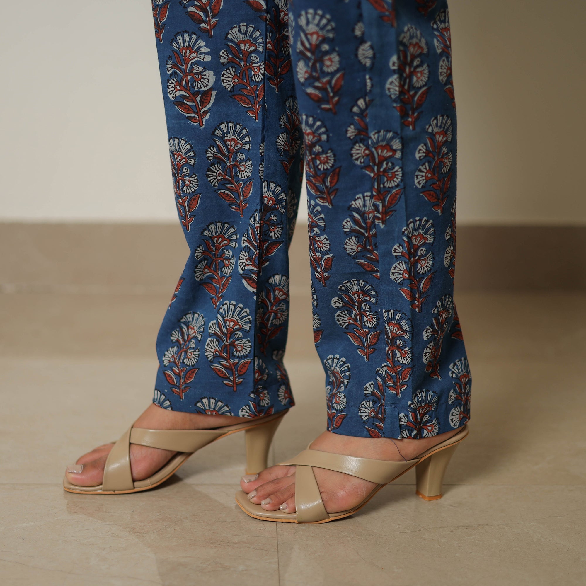 Stay stylish with our blue hand block-printed cotton bagru co-ord set. Made from block-printed cotton fabric. The elasticized waist pant ensures a great fit, while the two side pockets add functionality to this pant. The unique design ensures a beautiful and comfortable fit.