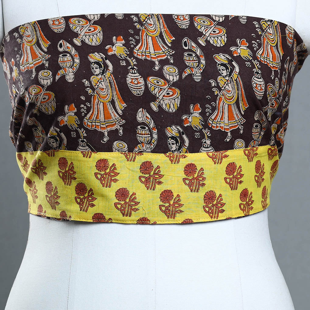 This brown printed cotton kalamkari blouse piece, thoughtfully designed to complement your sarees. Known for its breathable texture and effortless style, this fabric is a testament to the craftsmanship of skilled artisans. This blouse material is ideal for any occasion.